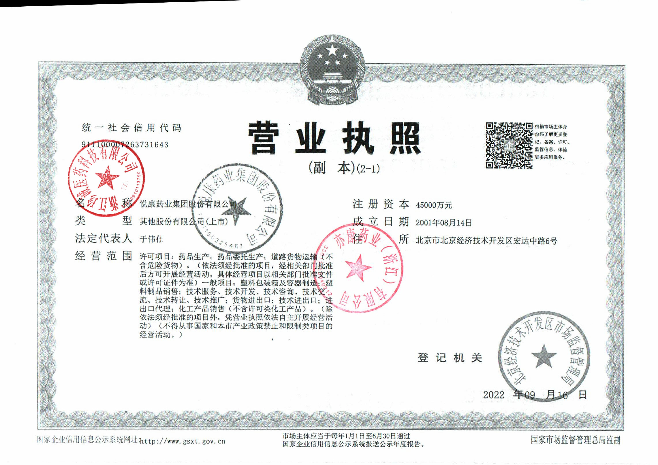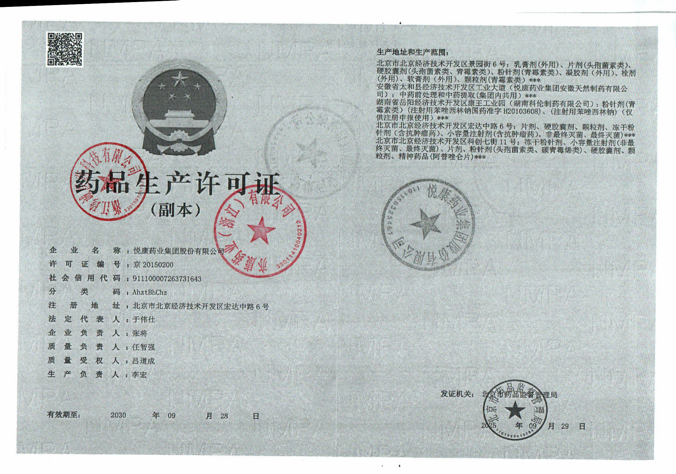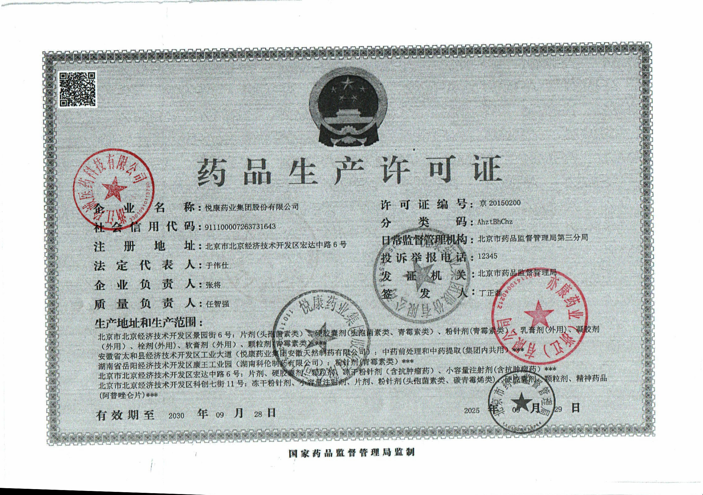 | 1 | 11000005 | 悦康药业集团股份有限公司 | 许可证 (1).jpg | Mar 27, 2026 10:10:47 AM | 查看下载 | |