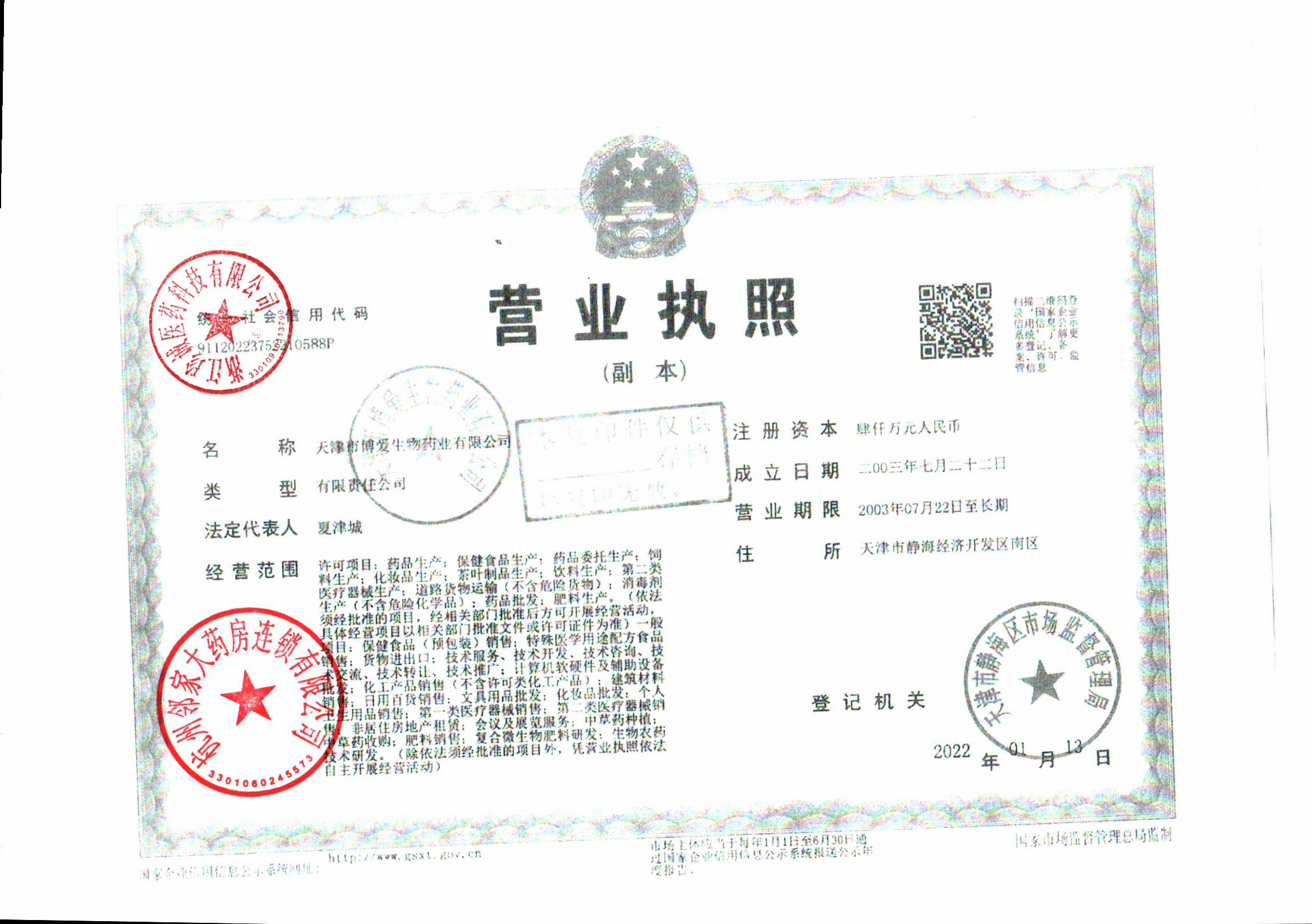 | 3 | 12000083 | 天津市博爱生物药业有限公司 | 营业执照.jpg | Nov 28, 2025 10:39:06 AM | 查看下载 | |