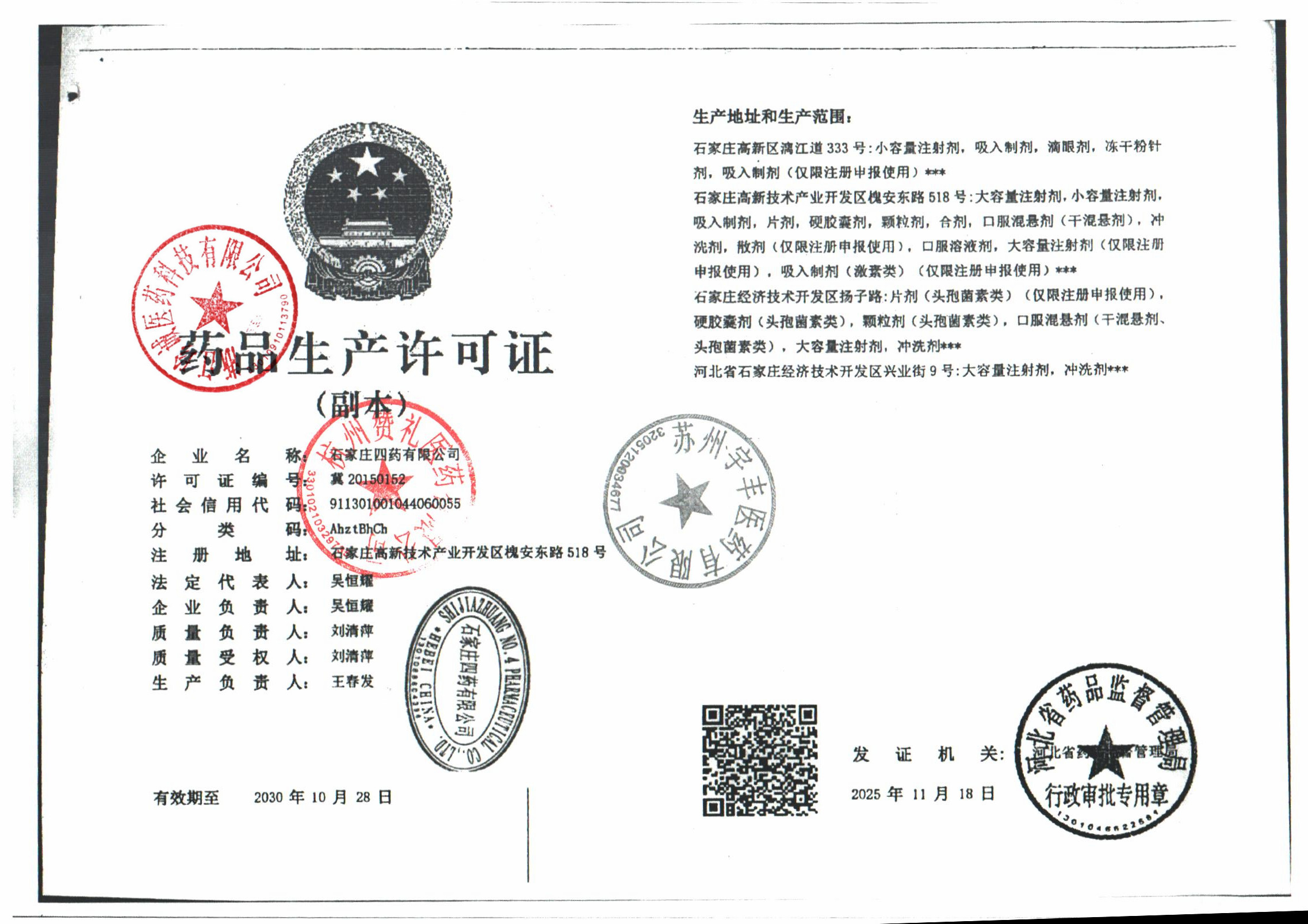 | 2 | 1300003 | 石家庄四药有限公司 | 许可证.jpg | Apr 21, 2026 2:39:08 PM | 查看下载 | |