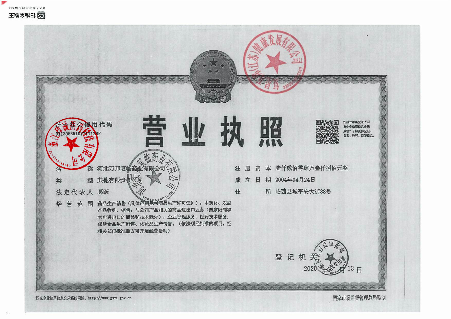 3 | 13000165 | 河北万邦复临药业有限公司 | 营业执照 (1).jpg | Sep 23, 2025 3:23:34 PM | 查看下载 | |