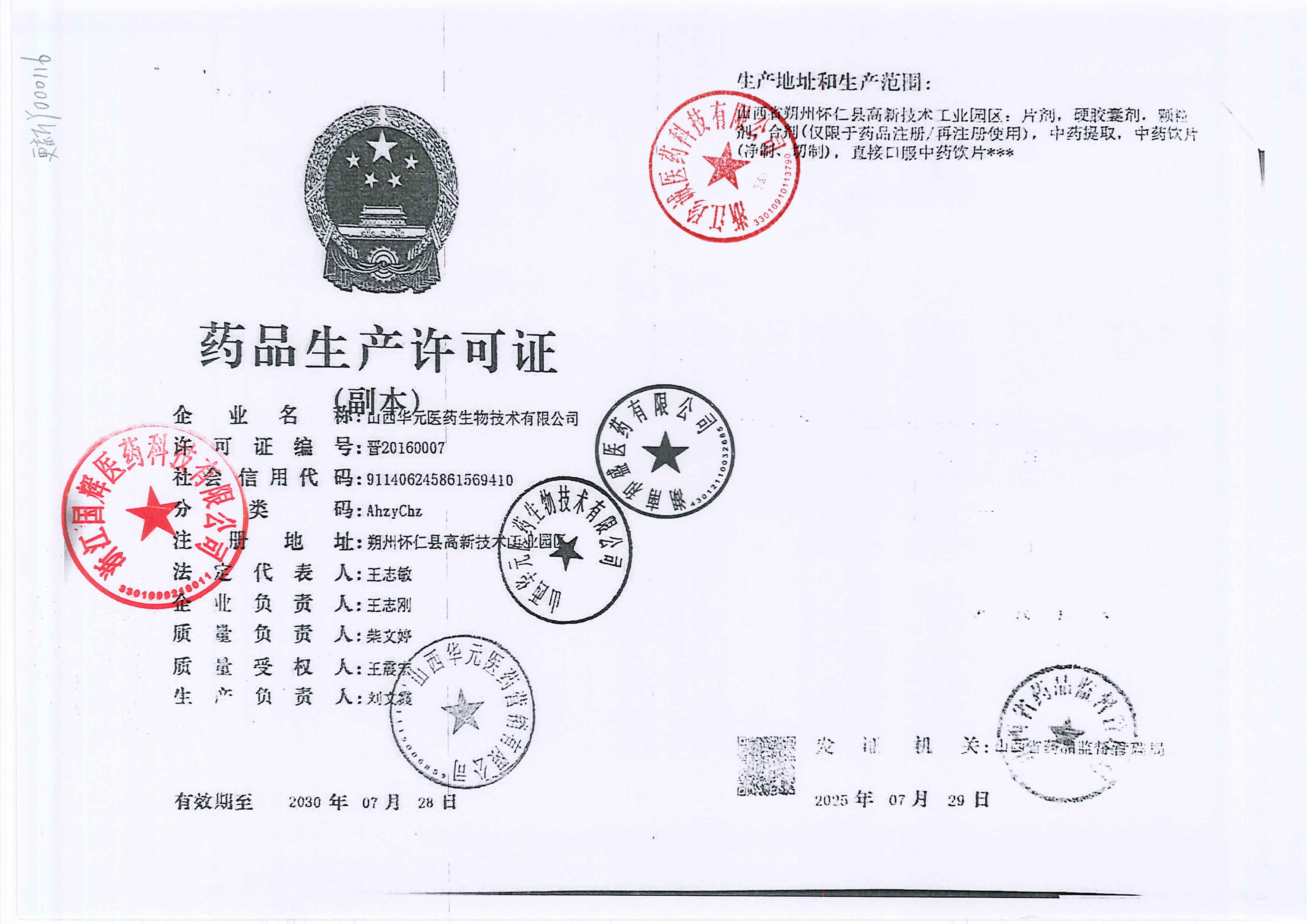 | 1 | 14000133 | 山西华元医药生物技术有限公司 | 许可证.jpg | Nov 20, 2025 11:24:24 AM | 查看下载 | |