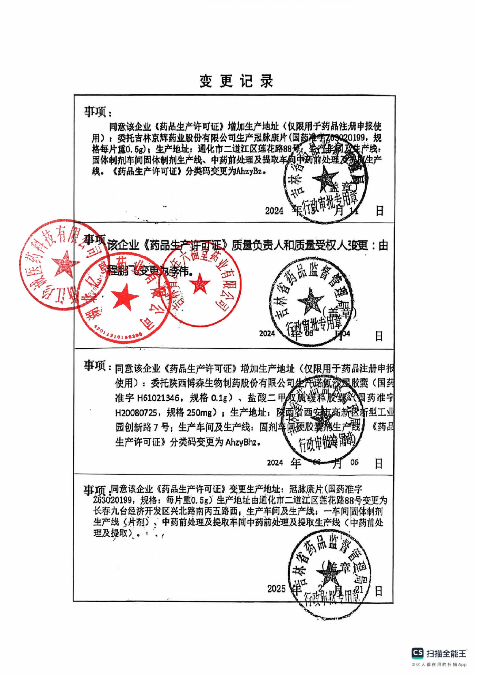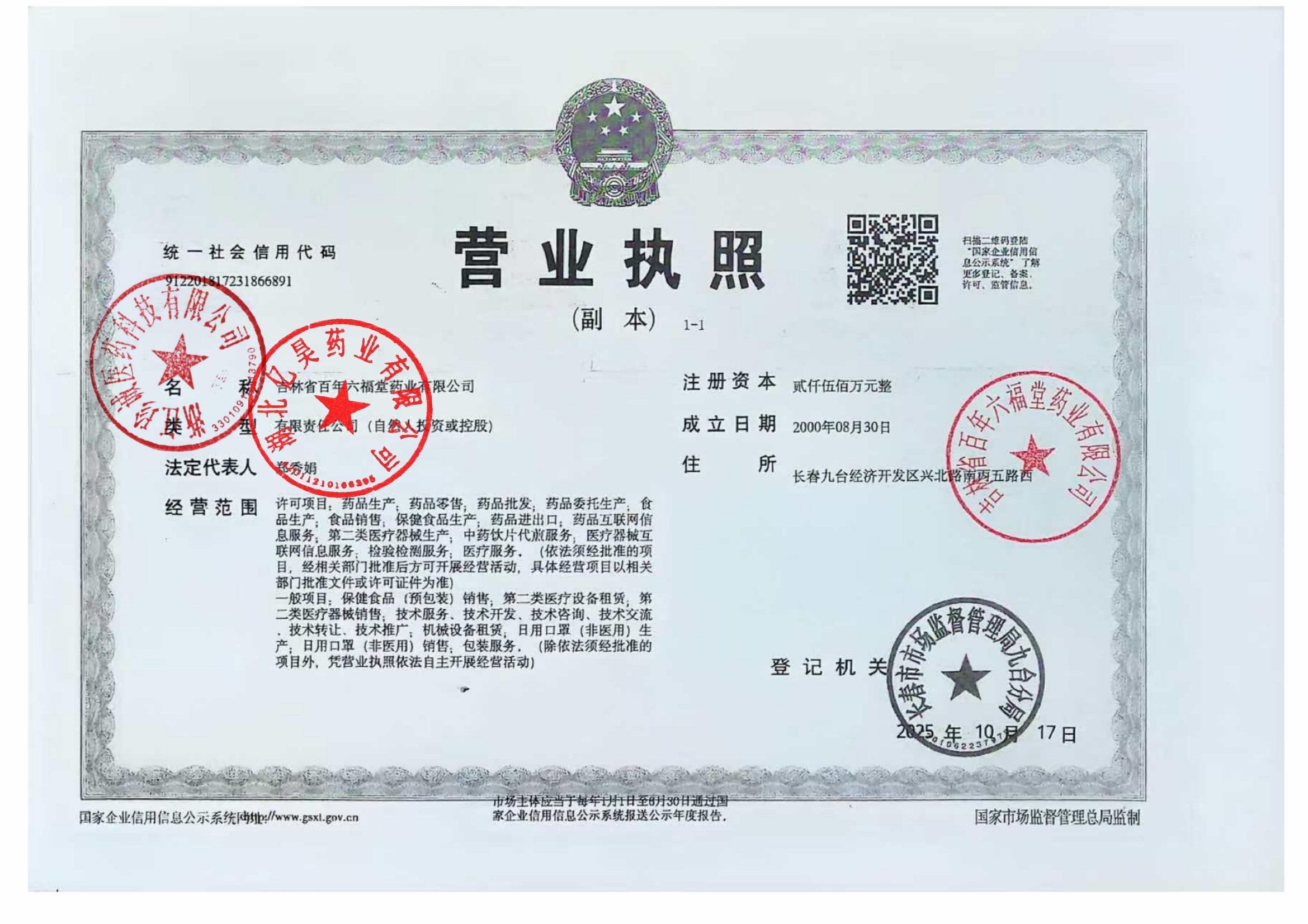 | 5 | 22003119 | 吉林省百年六福堂药业有限公司 | 变更记录 (3).jpg | Jan 14, 2026 9:52:32 AM | 查看下载 |