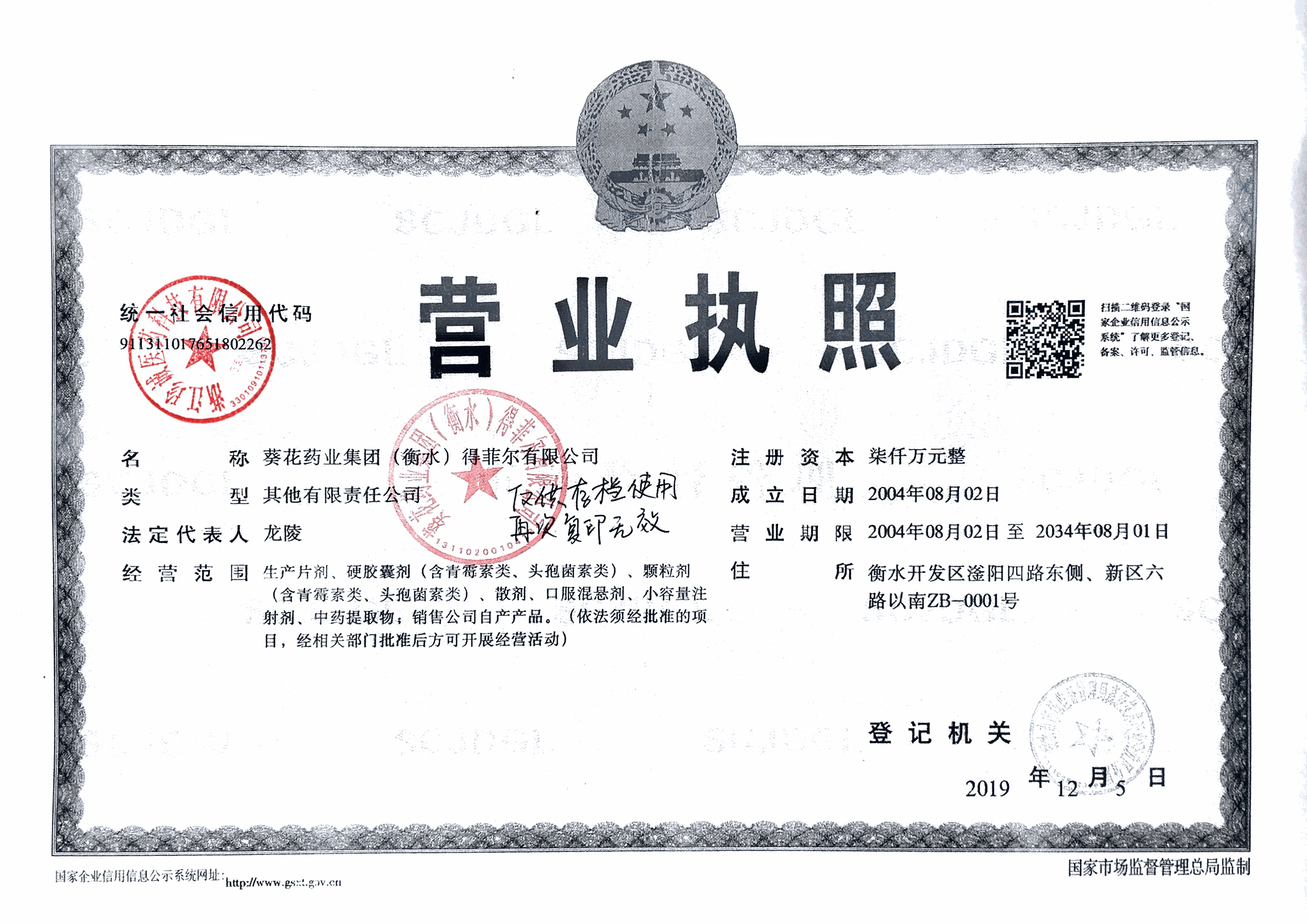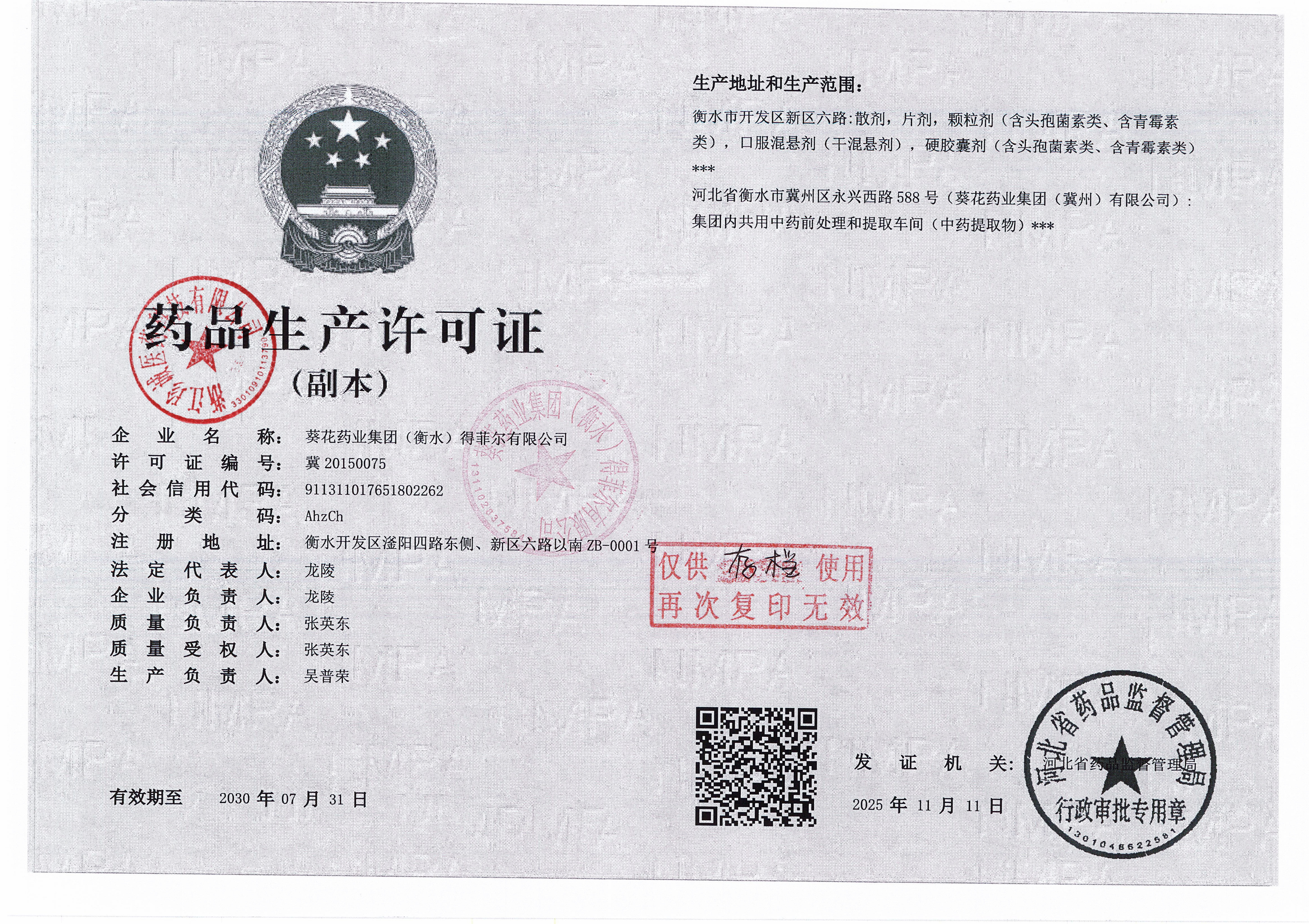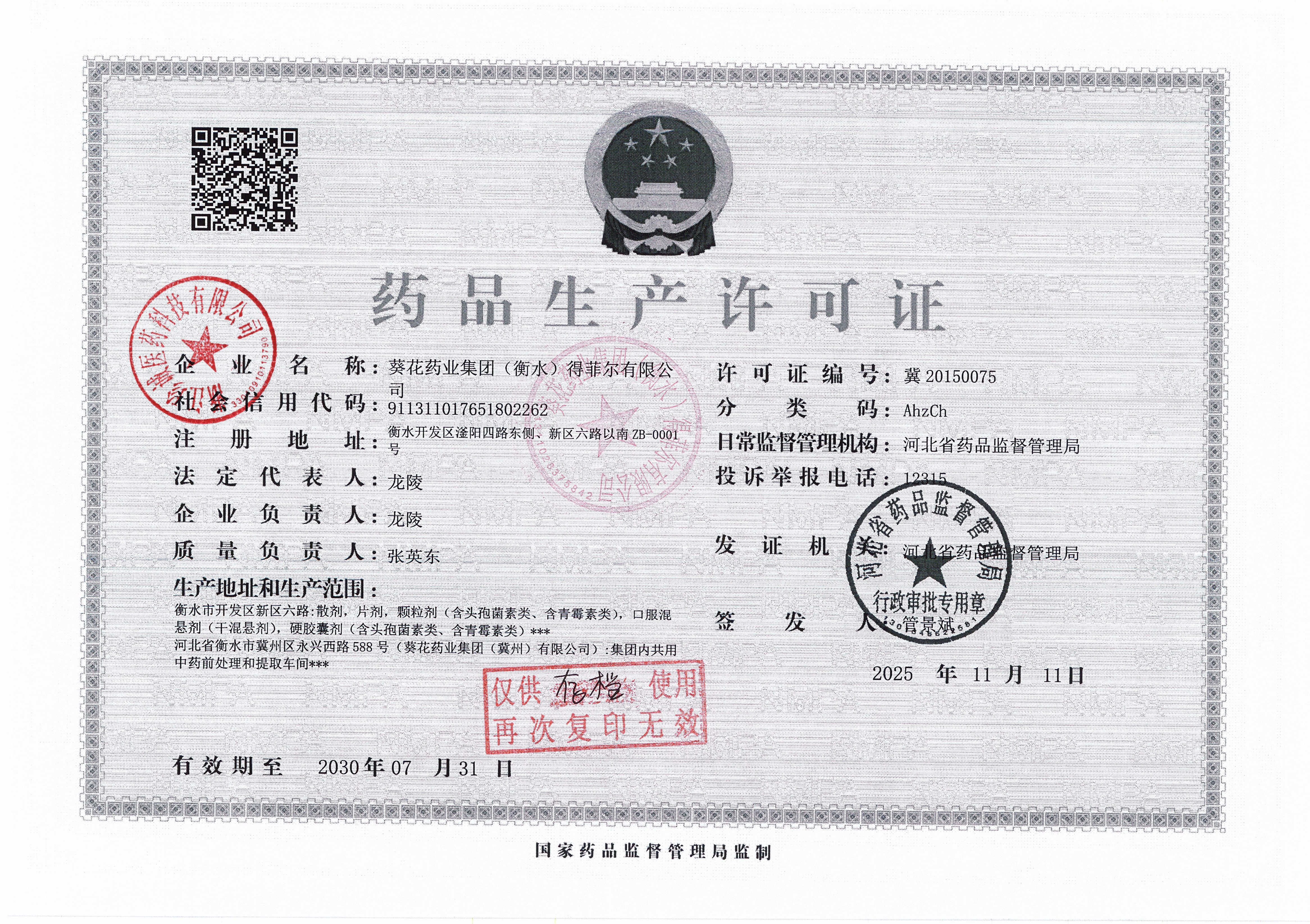 | 1 | 23000083 | 葵花药业集团(衡水)得菲尔有限公司 | 许可证 (2).jpg | Mar 27, 2026 5:01:01 PM | 查看下载 | |