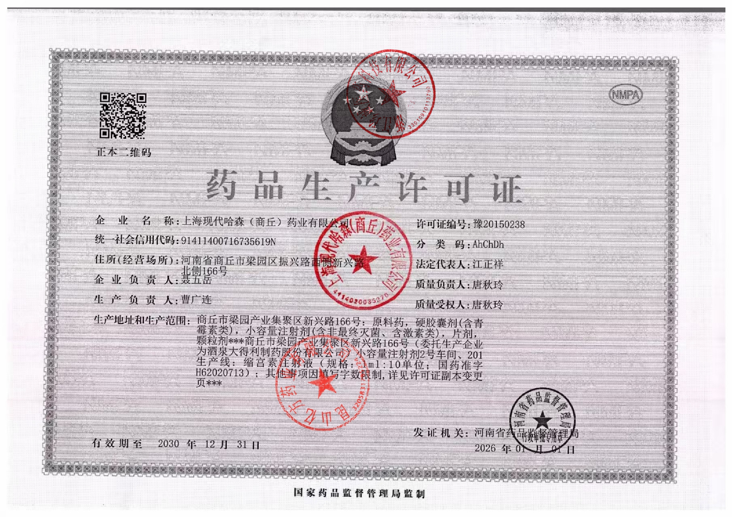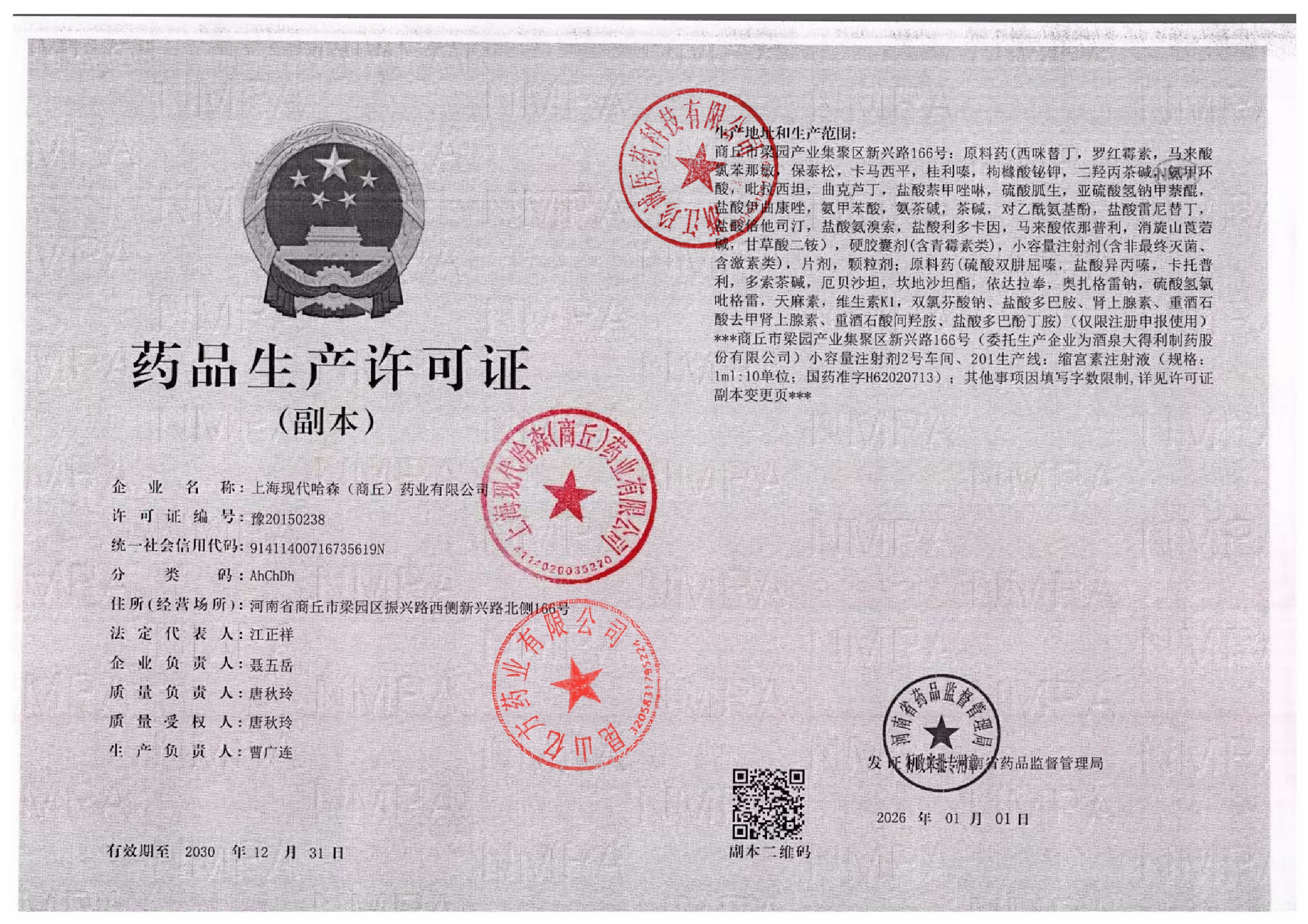 上海现代哈森(商丘)药业有限公司 |