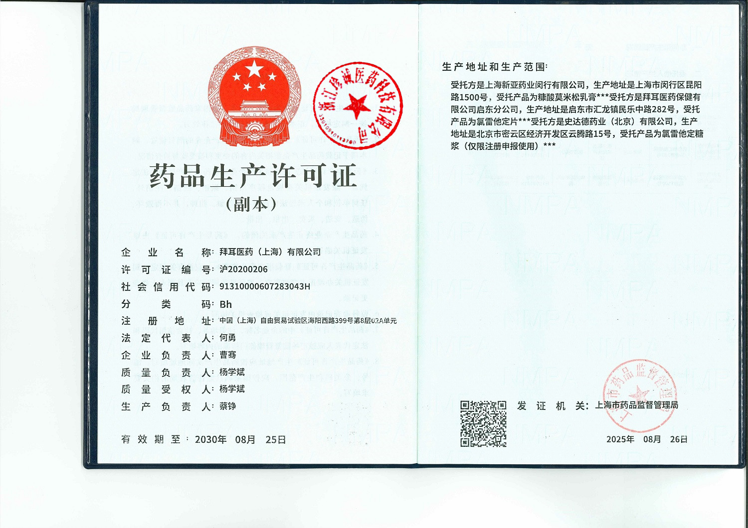 2 31000087 拜耳医药(上海)有限公司 药品生产许可证新.jpg Aug 29, 2025 4:17:37 PM 查看下载