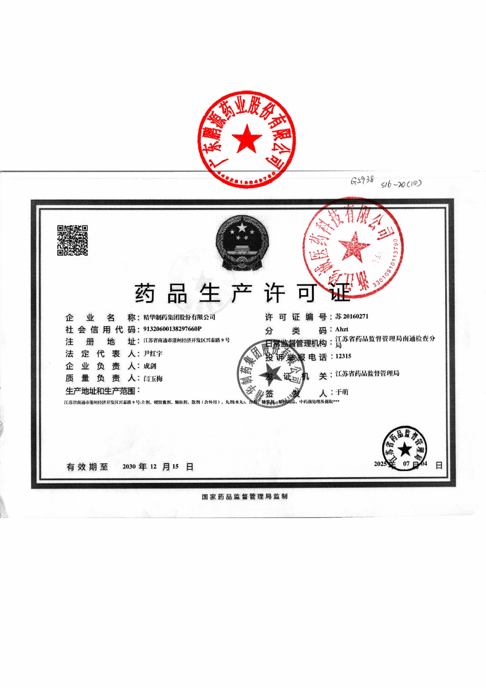 精华制药集团股份有限公司