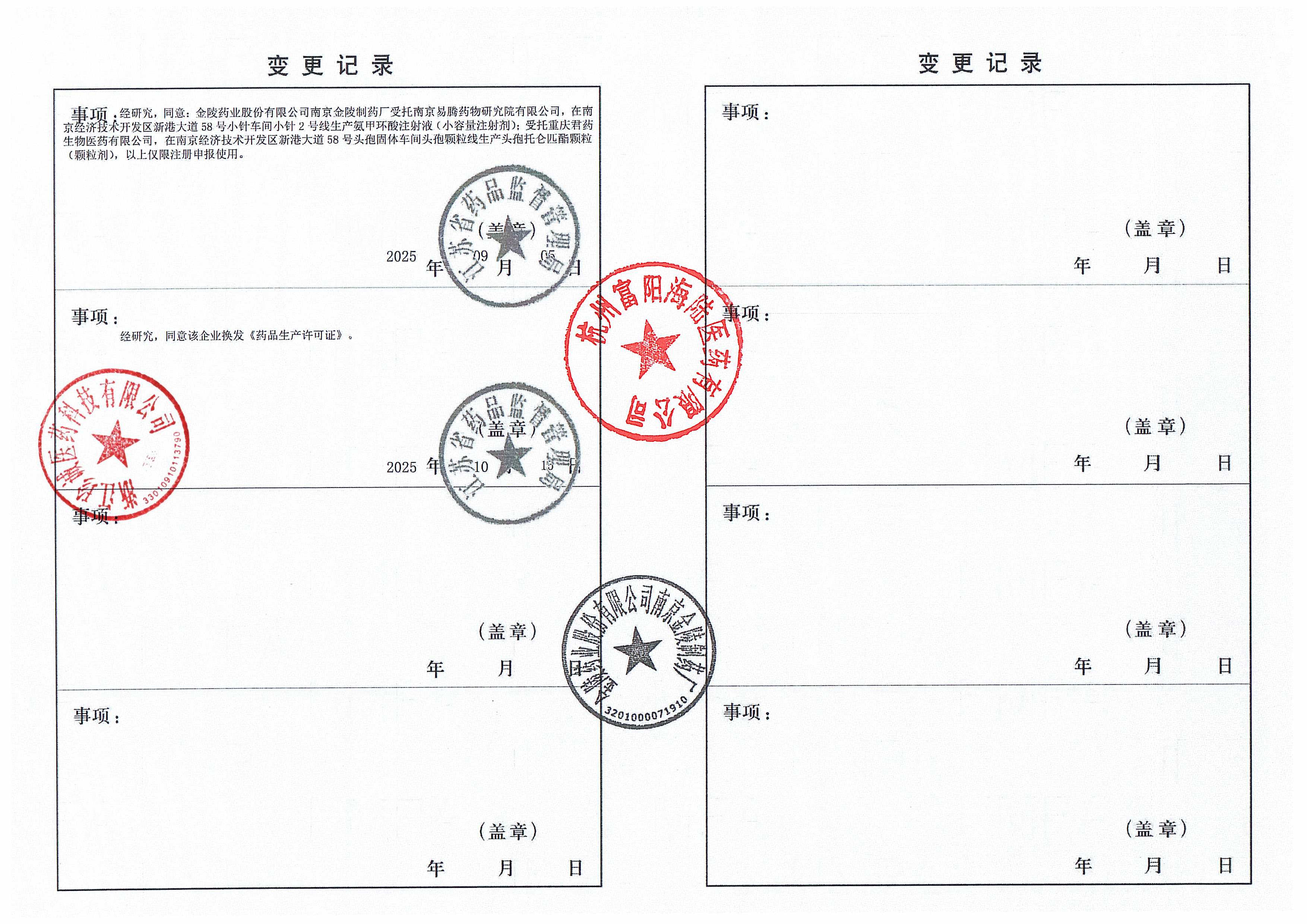 | 2 | 32000163 | 金陵药业股份有限公司南京金陵制药厂 | 变更记录.png | Nov 14, 2025 10:26:51 AM | 查看下载 | |