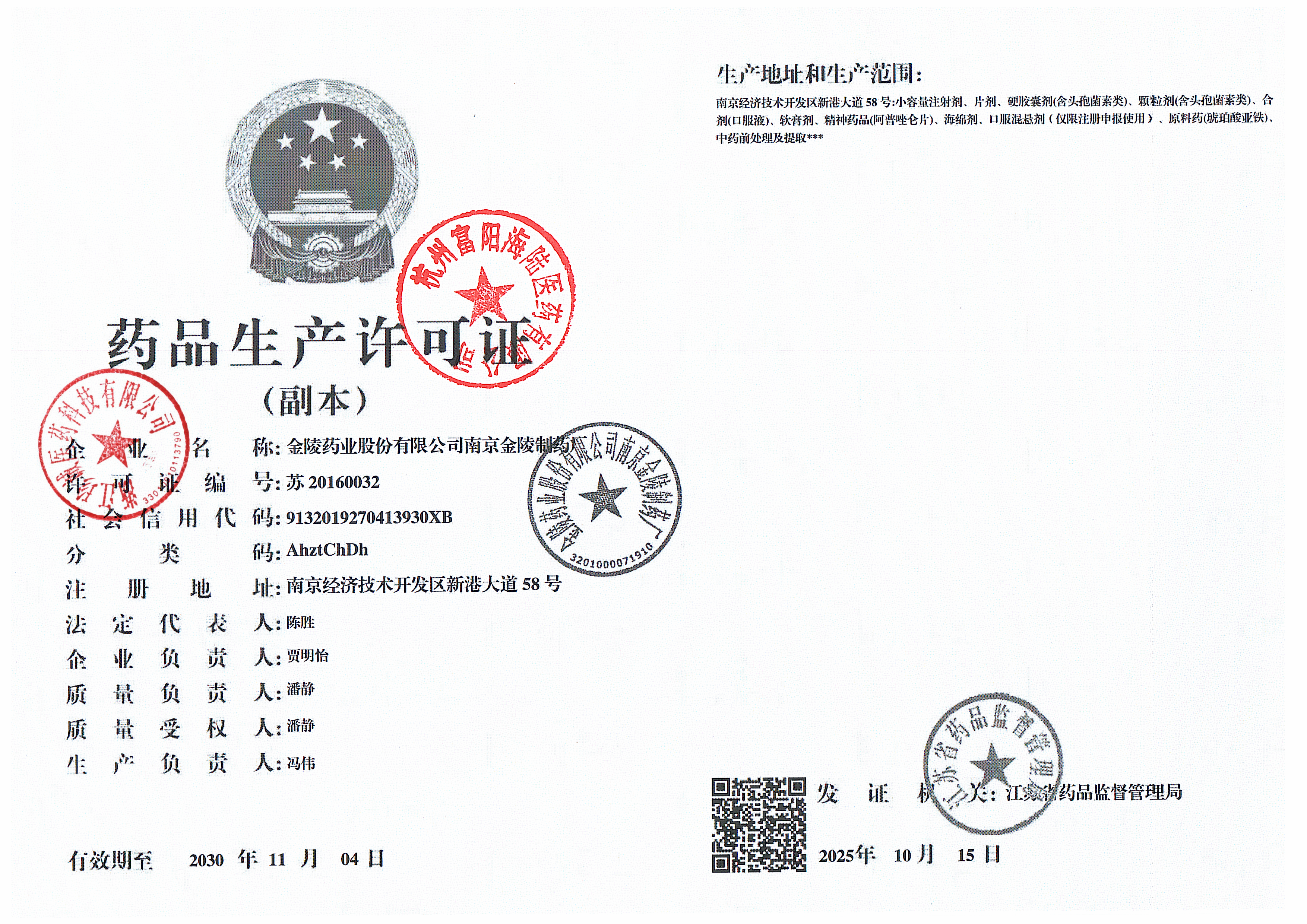 | 1 | 32000163 | 金陵药业股份有限公司南京金陵制药厂 | 许可证.png | Nov 14, 2025 10:26:51 AM | 查看下载 | |