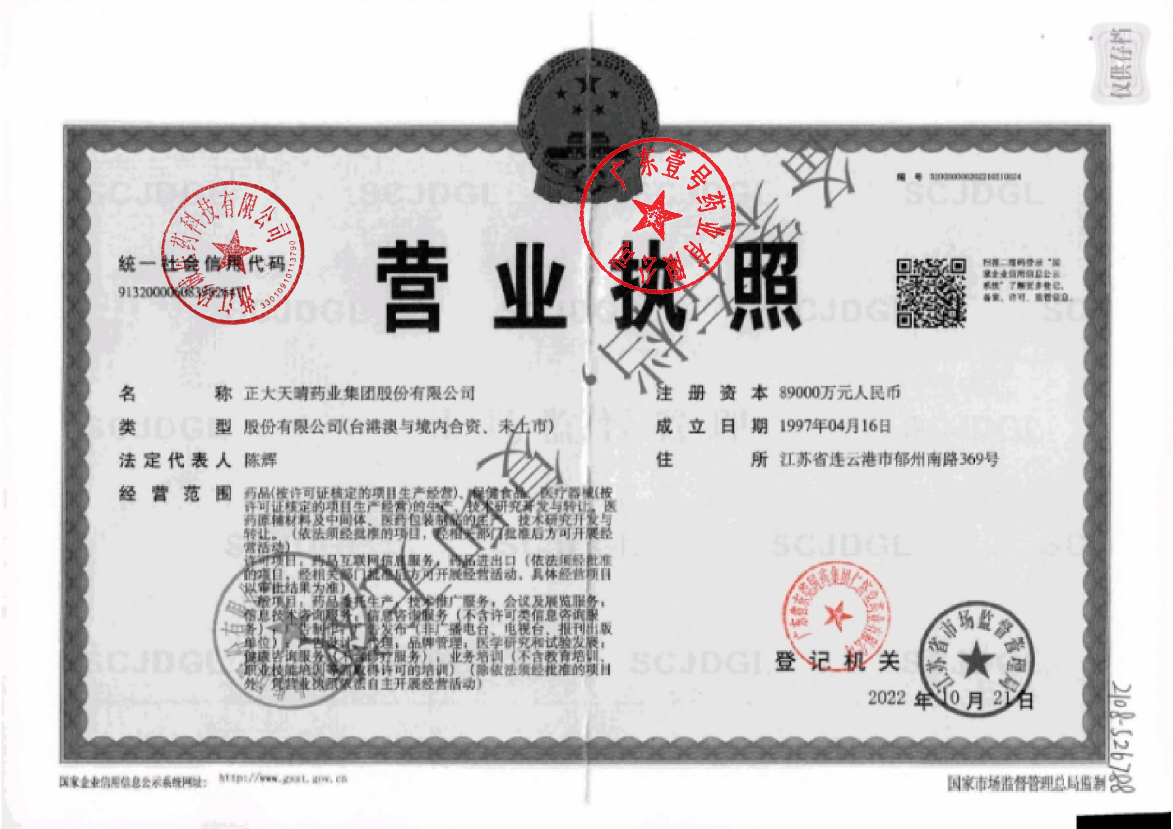 6 32000168 正大天晴药业集团股份有限公司 营业执照.jpg Apr 15, 2026 9:29:21 AM 查看下载