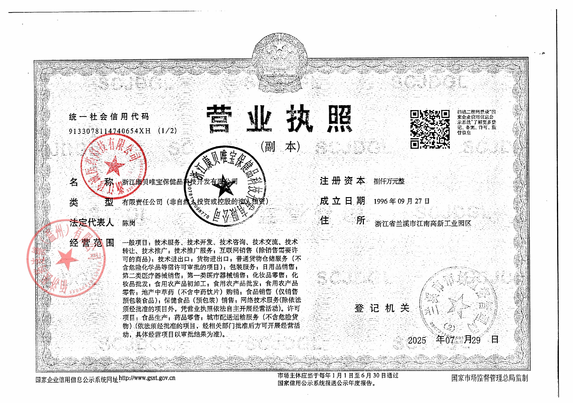 浙江康恩贝集团医疗保健品有限公司 |