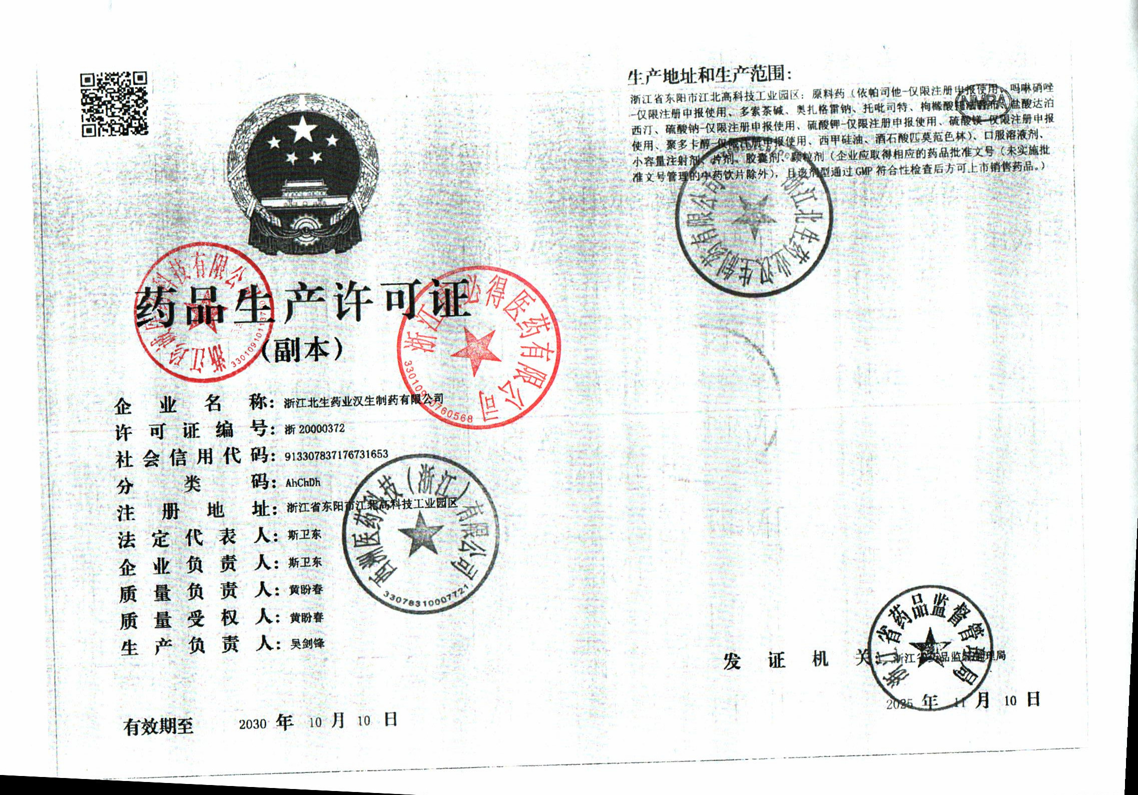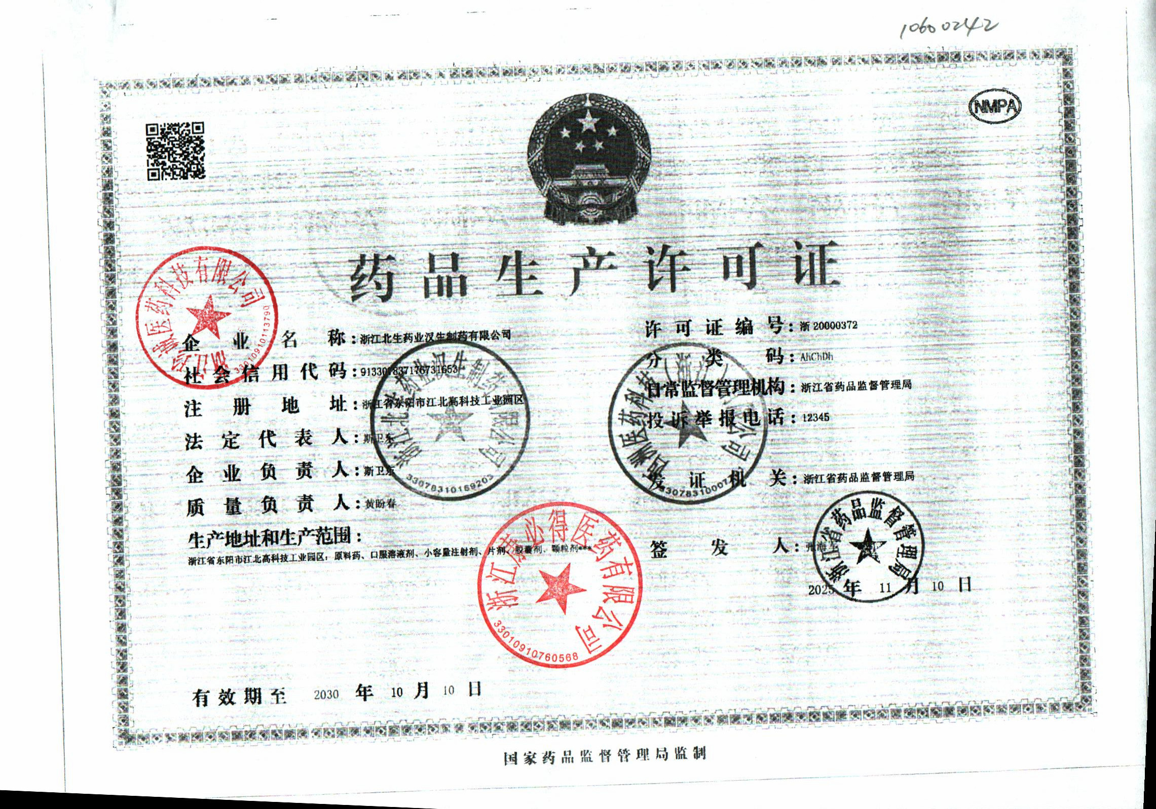 | 1 | 33078811 | 浙江北生药业汉生制药有限公司 | 许可证 (2).jpg | Apr 9, 2026 9:03:52 AM | 查看下载 | |