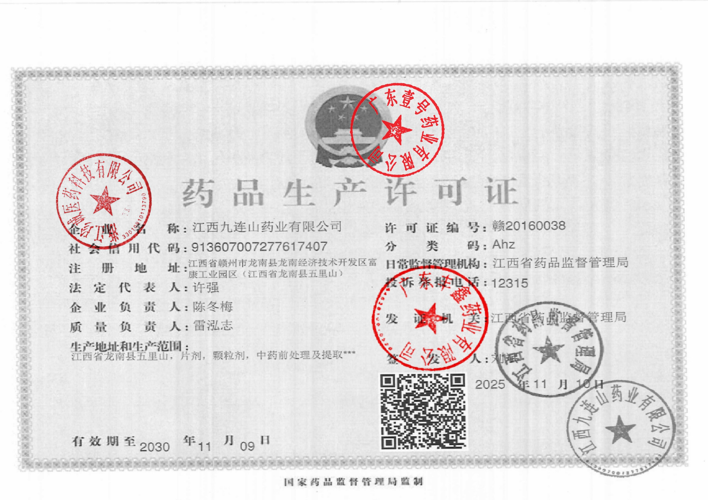 1 36000005 江西九连山药业有限公司 药品生产许可证.jpg Jan 29, 2026 2:47:24 PM 查看下载