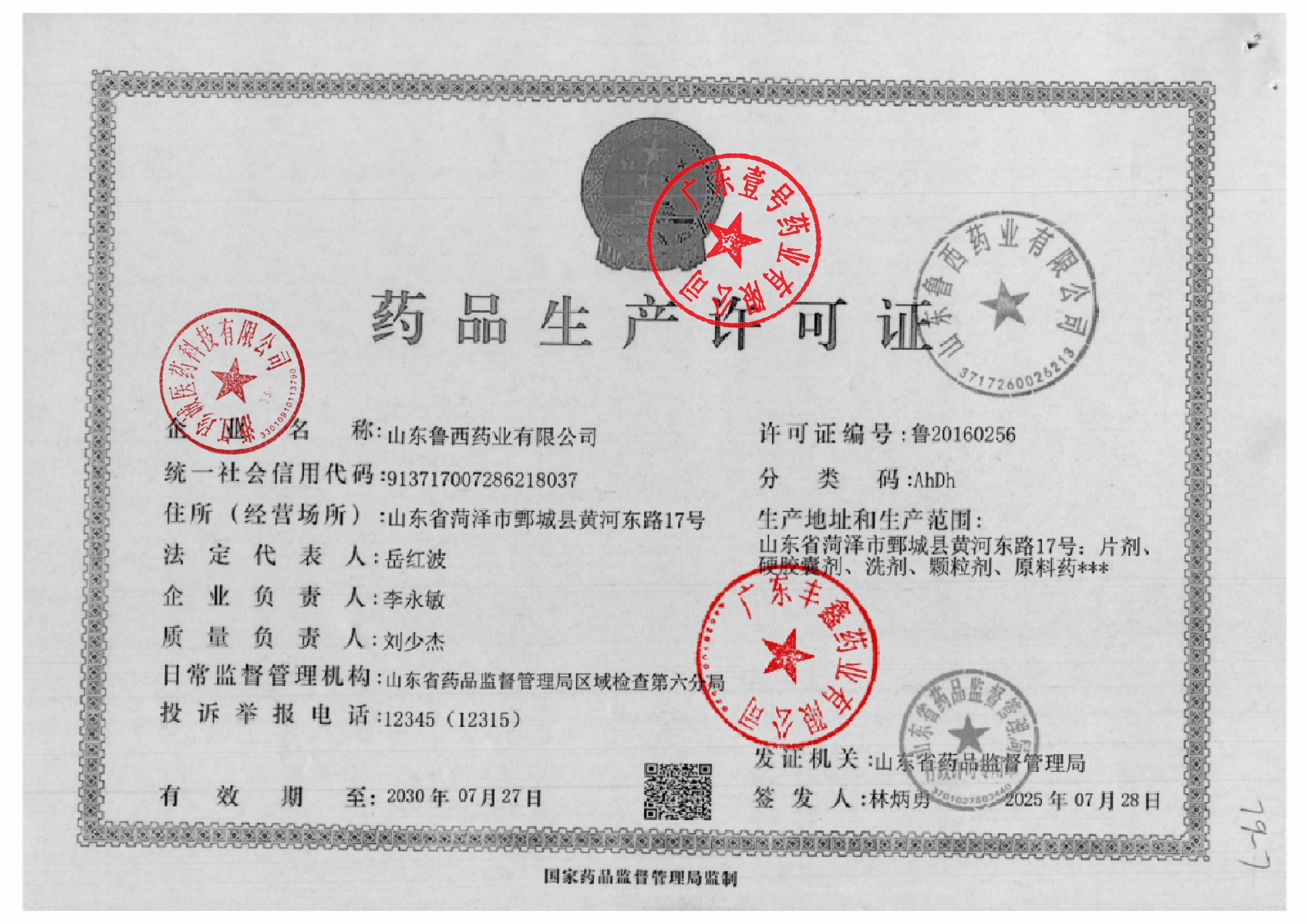 1 37000039 山东鲁西药业有限公司 药品生产许可证.jpg Feb 28, 2026 1:48:21 PM 查看下载