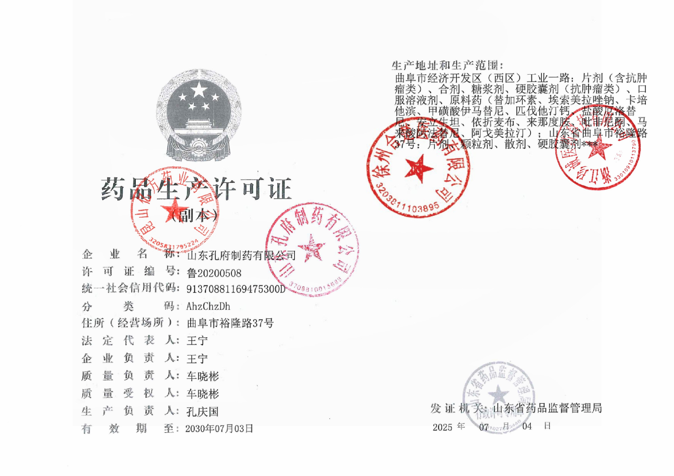 山东孔府制药有限公司