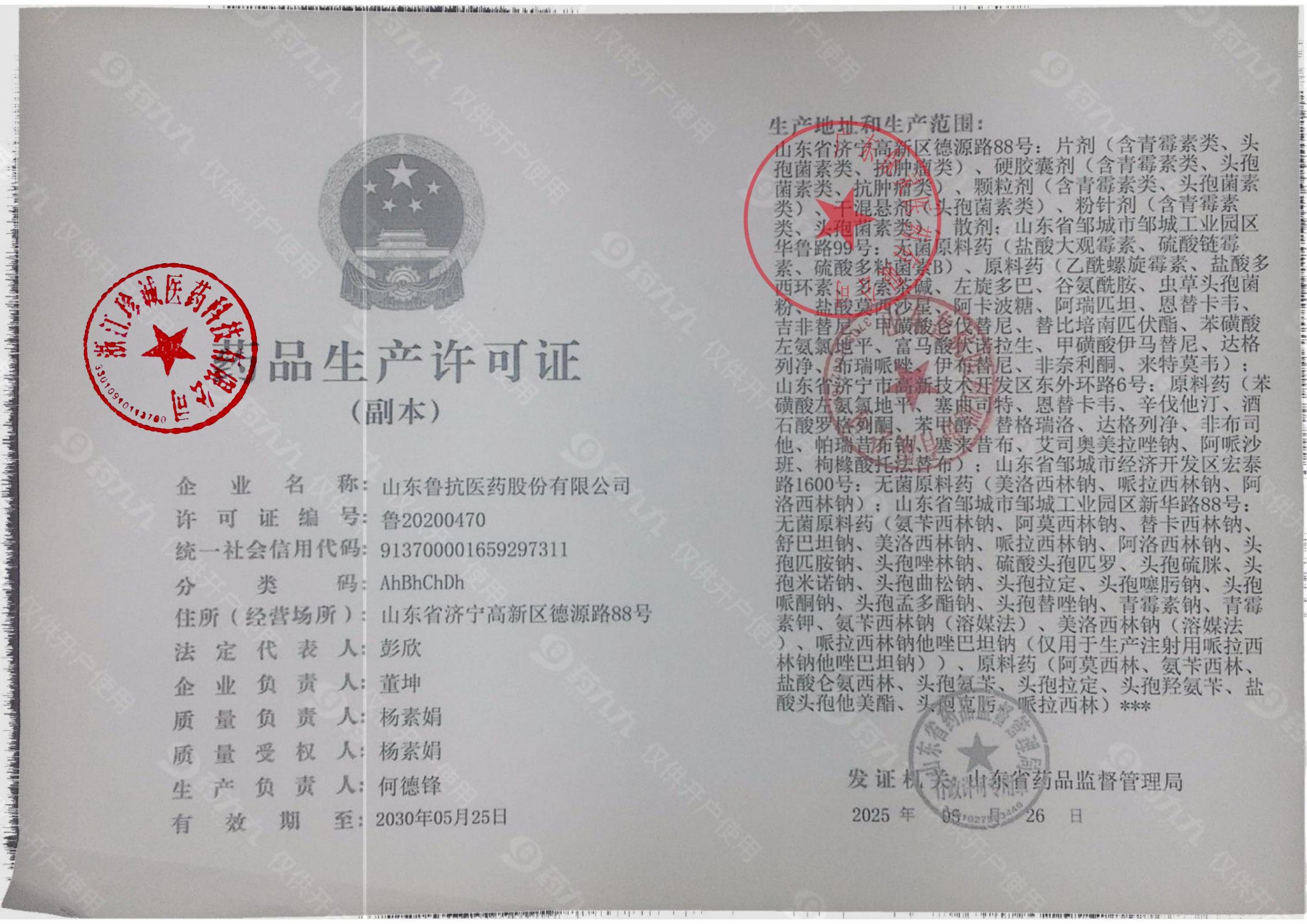| 4 | 370000951 | 山东鲁抗医药股份有限公司 | 生产许可证 (3).jpg | Mar 11, 2021 1:53:30 PM | 查看下载 | |