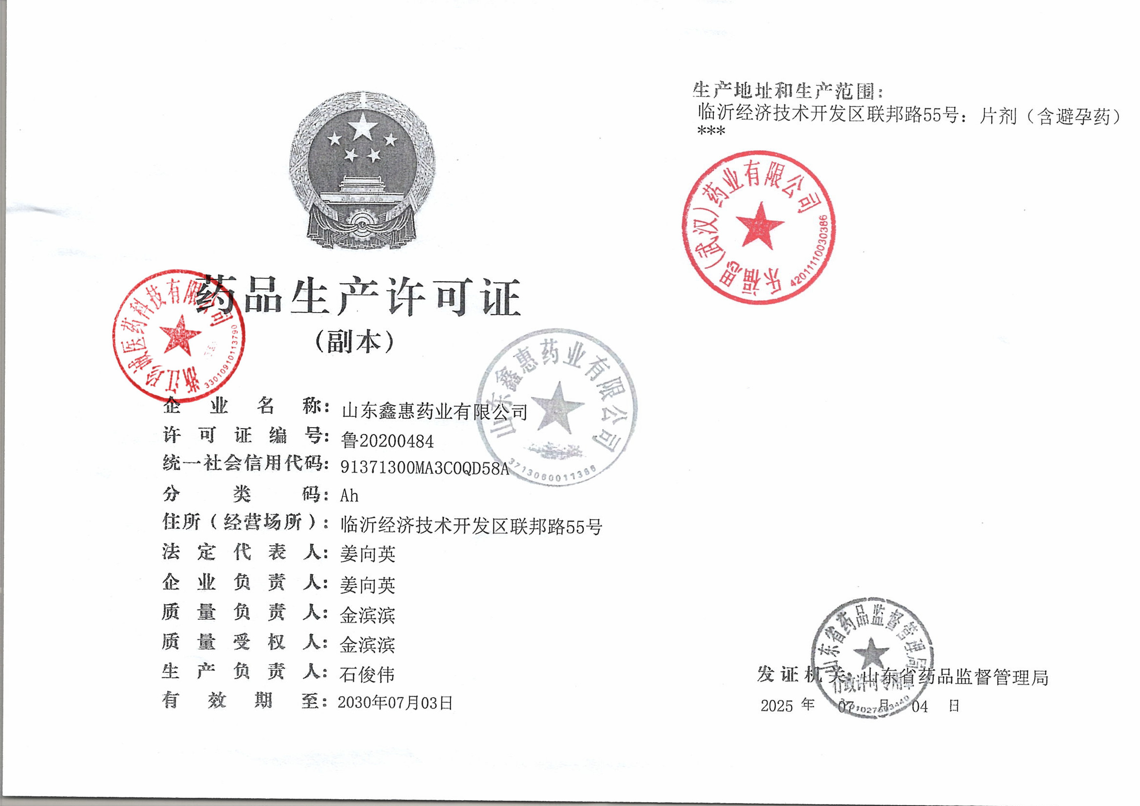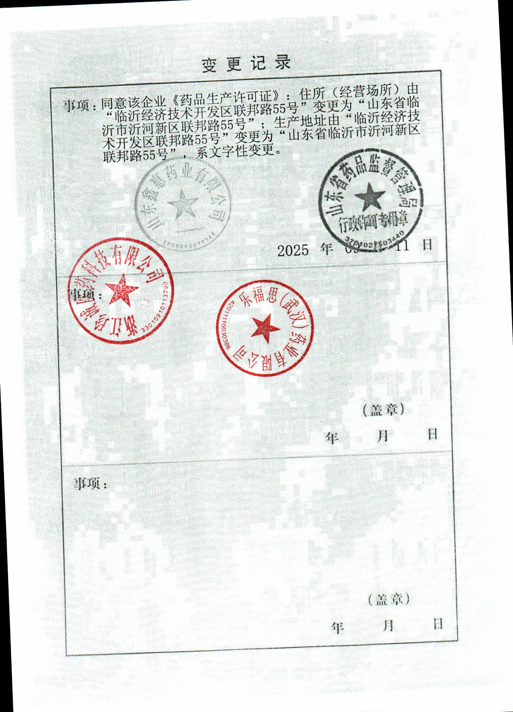 | 7 | 37000129 | 山东鑫惠药业有限公司 | 变更记录 (2).jpg | Feb 6, 2025 11:03:46 AM | 查看下载 |