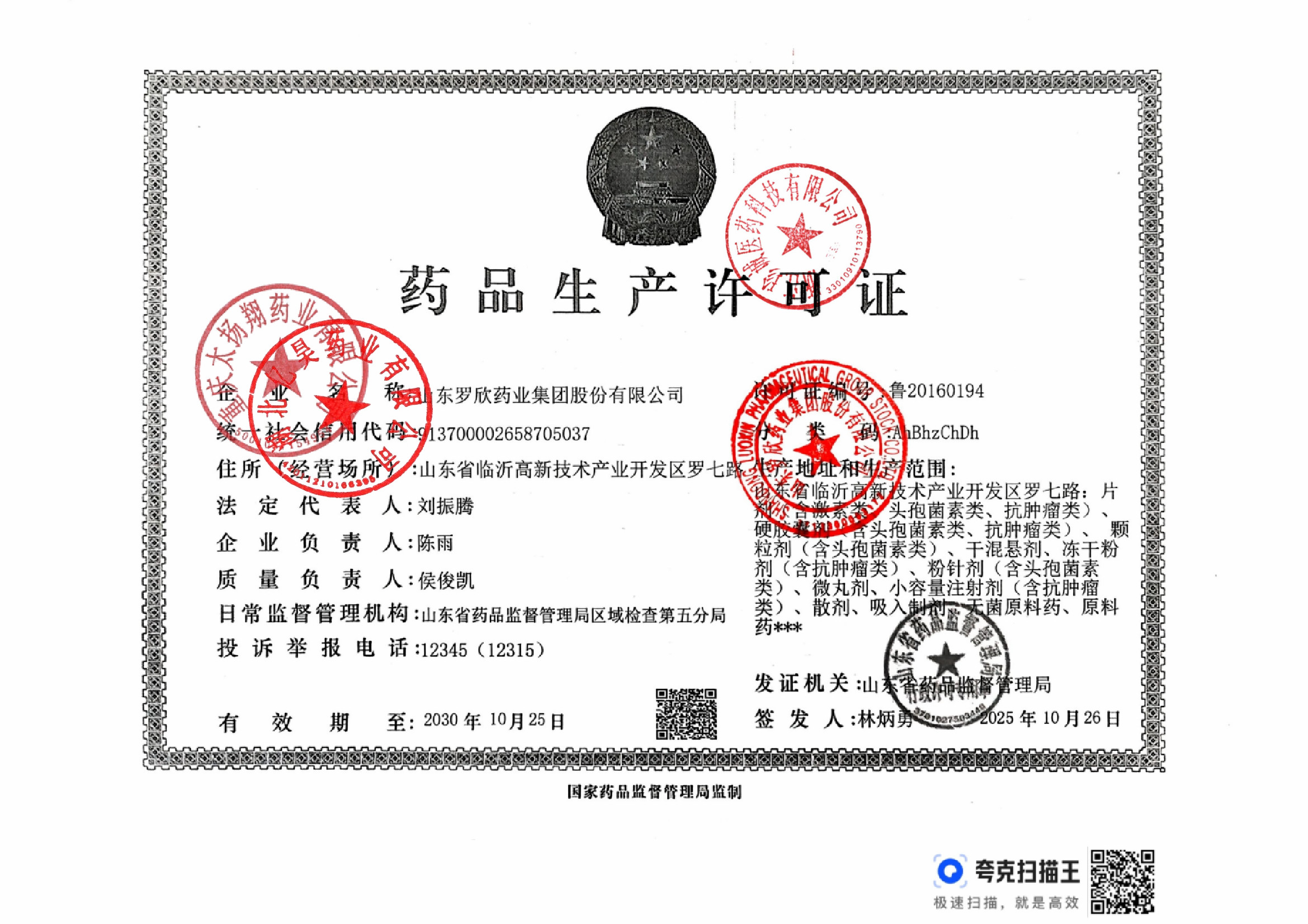 | 1 | 37000796 | 山东罗欣药业集团股份有限公司 | 药品生产许可证 (1).jpg | Feb 28, 2026 1:52:52 PM | 查看下载 | |