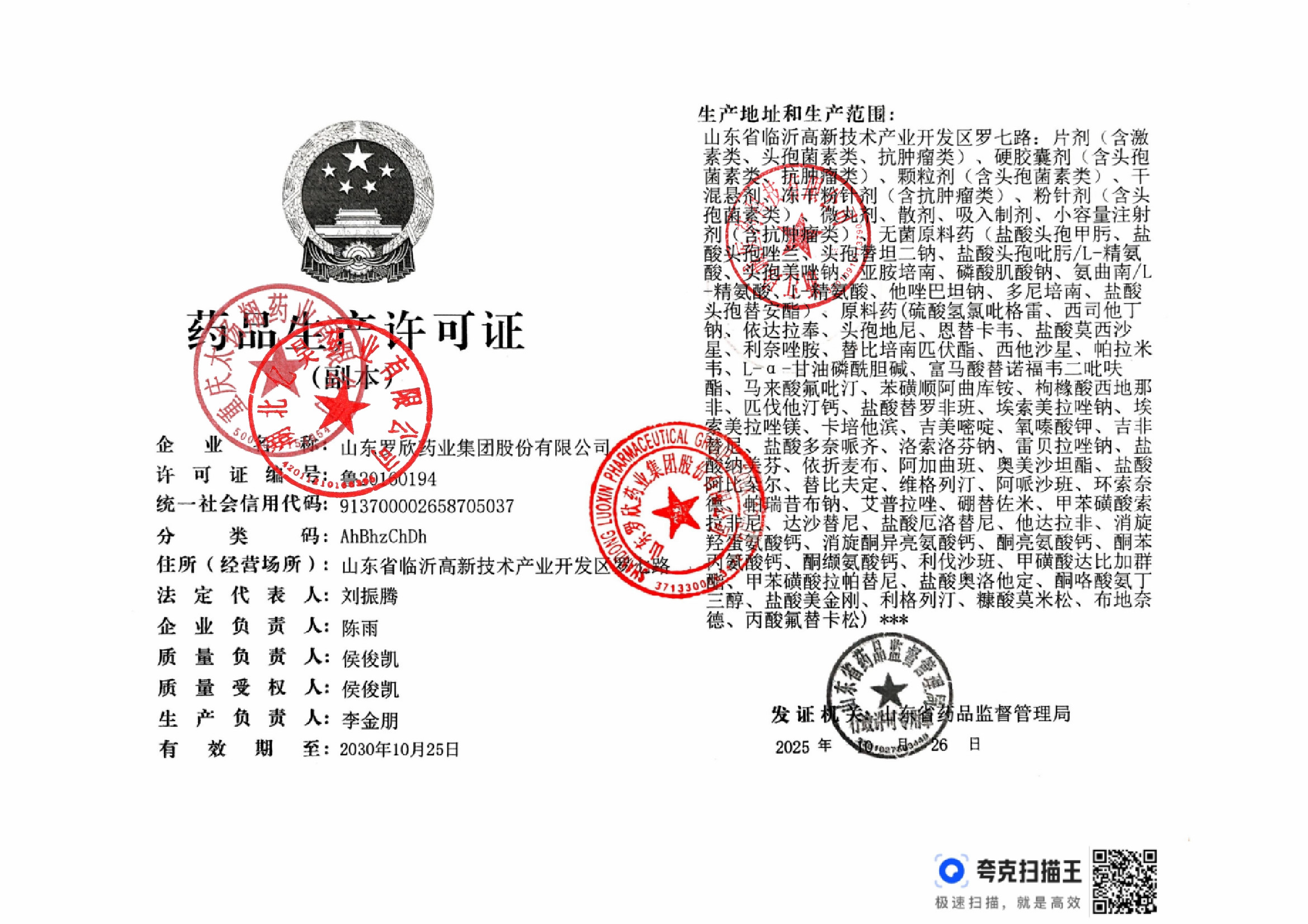| 2 | 37000796 | 山东罗欣药业集团股份有限公司 | 药品生产许可证 (2).jpg | Feb 28, 2026 1:52:52 PM | 查看下载 | |