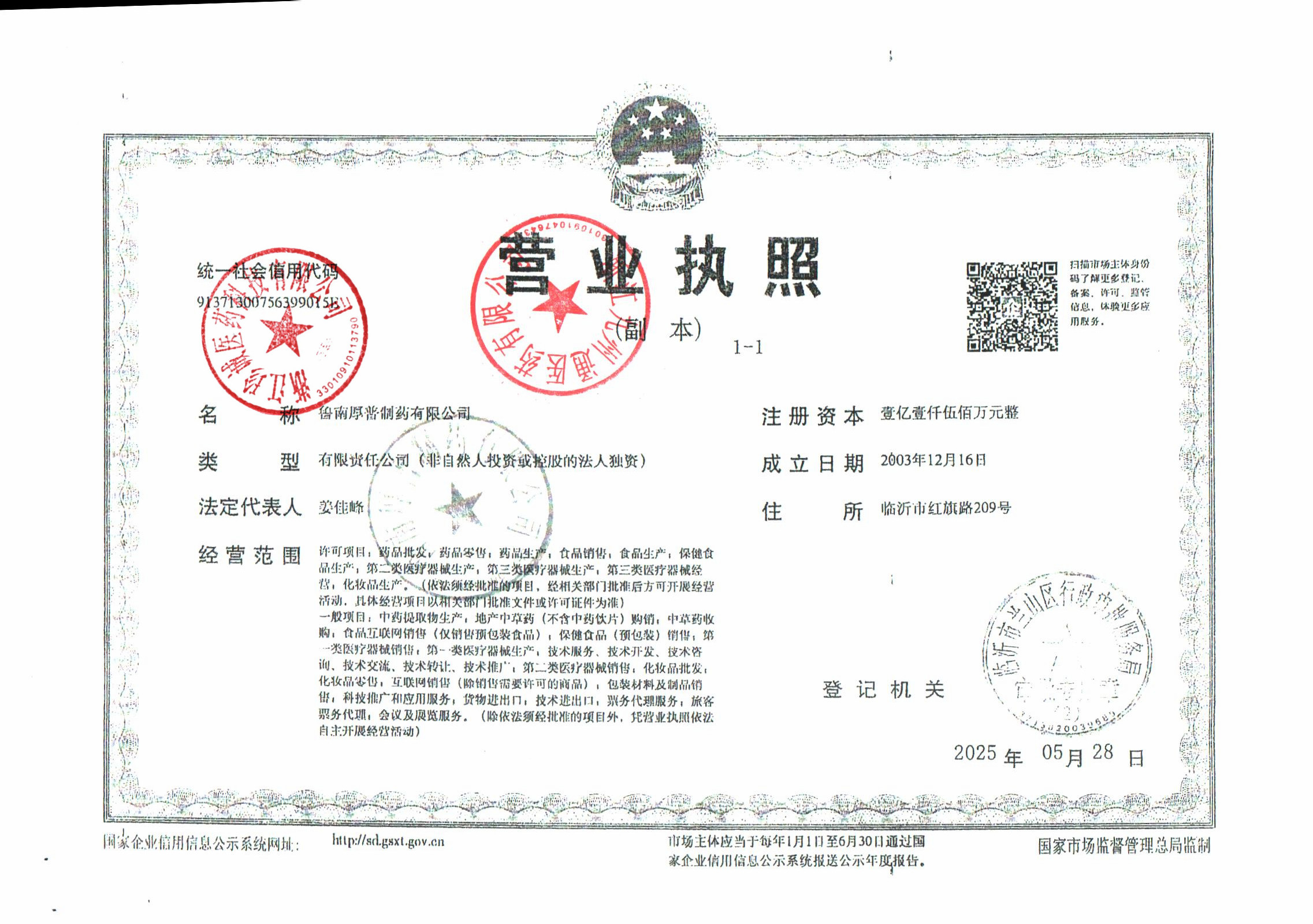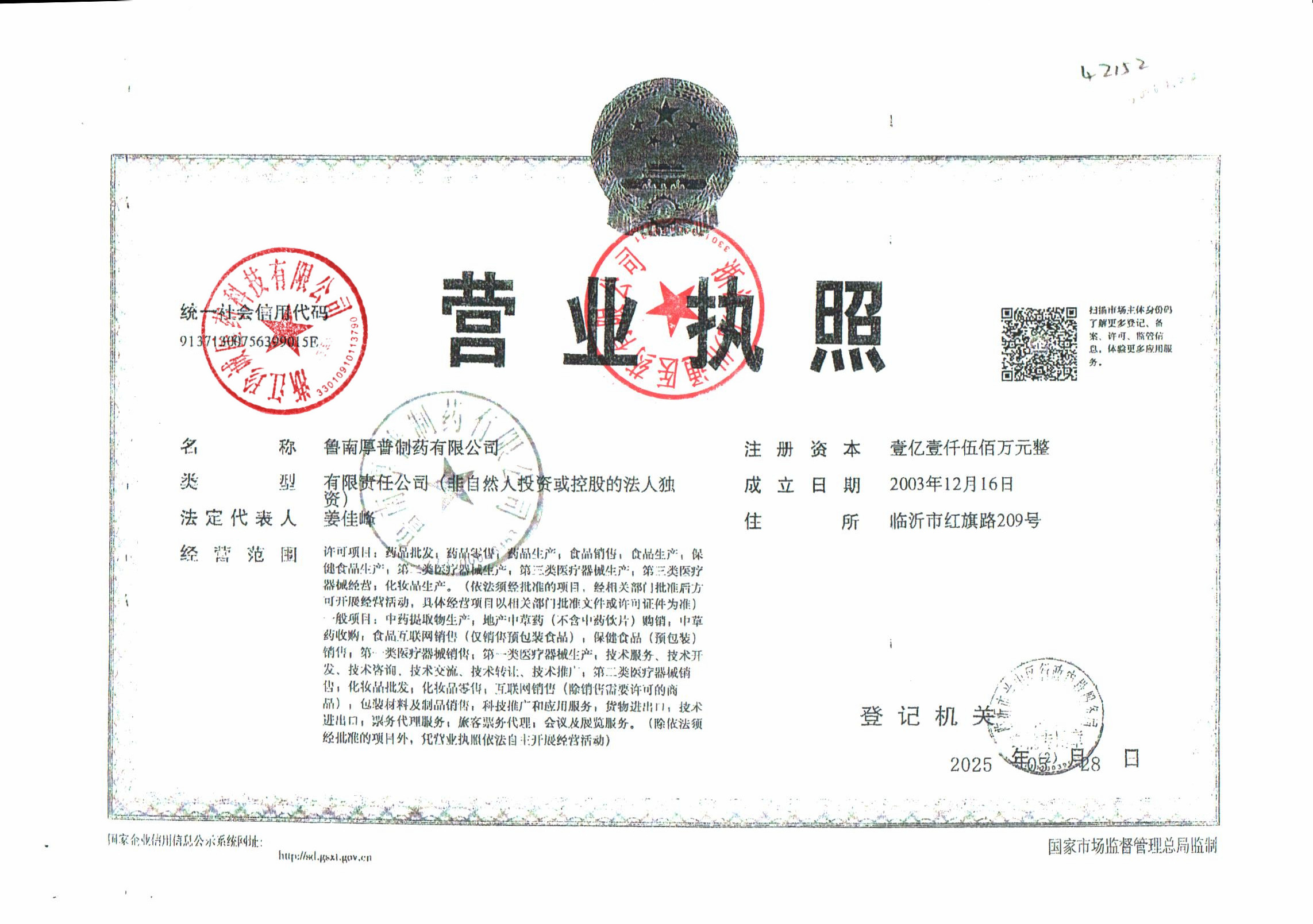| 5 | 37000807 | 鲁南厚普制药有限公司 | 营业执照 (1).jpg | Apr 9, 2026 2:06:27 PM | 查看下载 | |