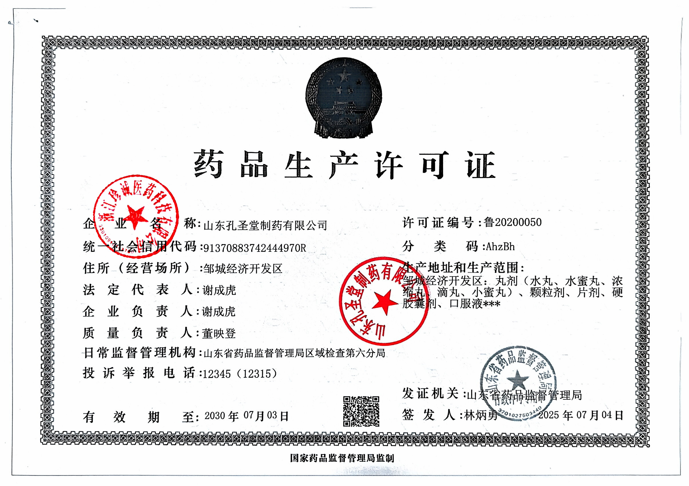 | 1 | 37000809 | 山东孔圣堂制药有限公司 | 新药品生产许可证.jpg | Sep 3, 2025 4:12:36 PM | 查看下载 | |