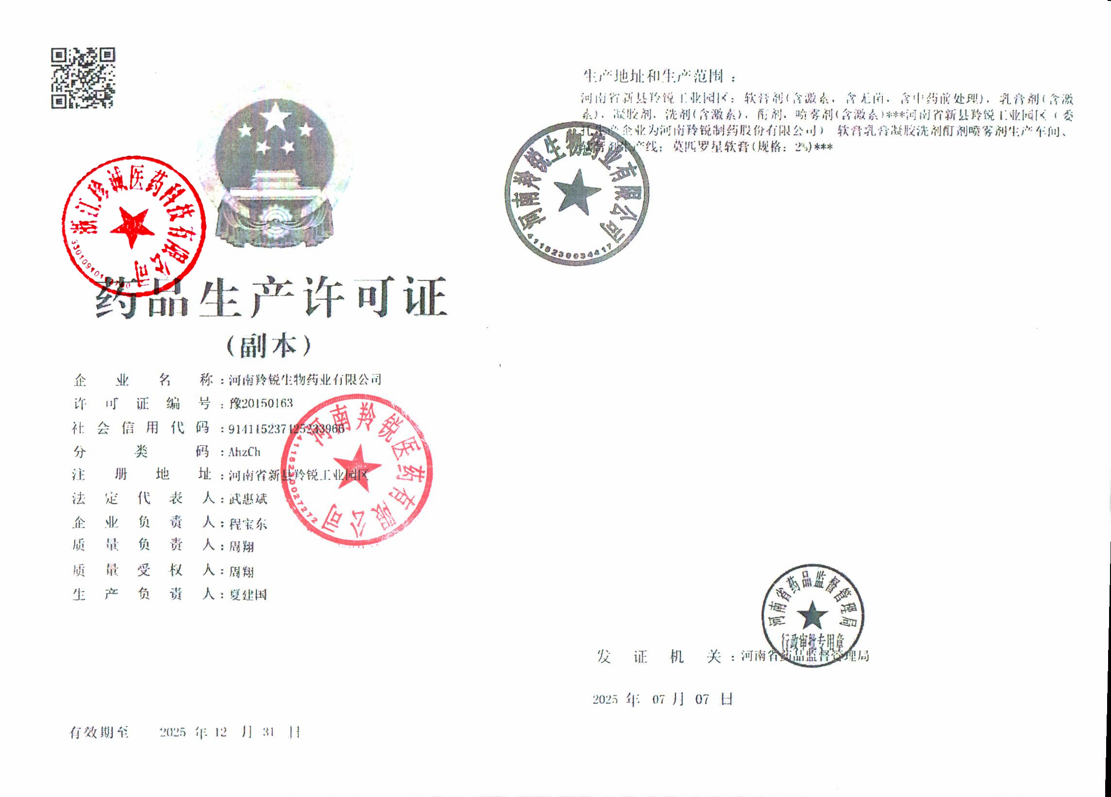 | 1 | 41000026 | 河南羚锐制药股份有限公司 | 药品生产许可证.jpg | Sep 28, 2025 3:57:52 PM | 查看下载 | |