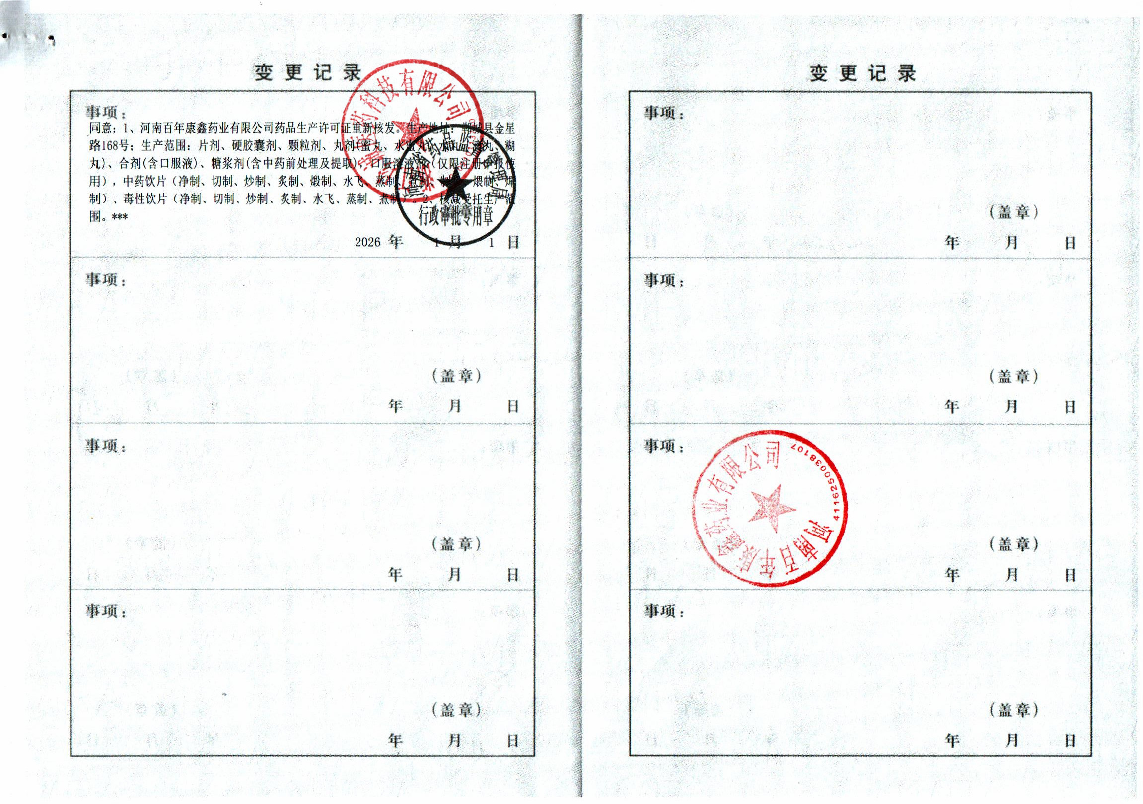 | 4 | 41000087 | 河南百年康鑫药业有限公司 | 变更记录.jpg | Jan 5, 2026 9:10:39 AM | 查看下载 | |