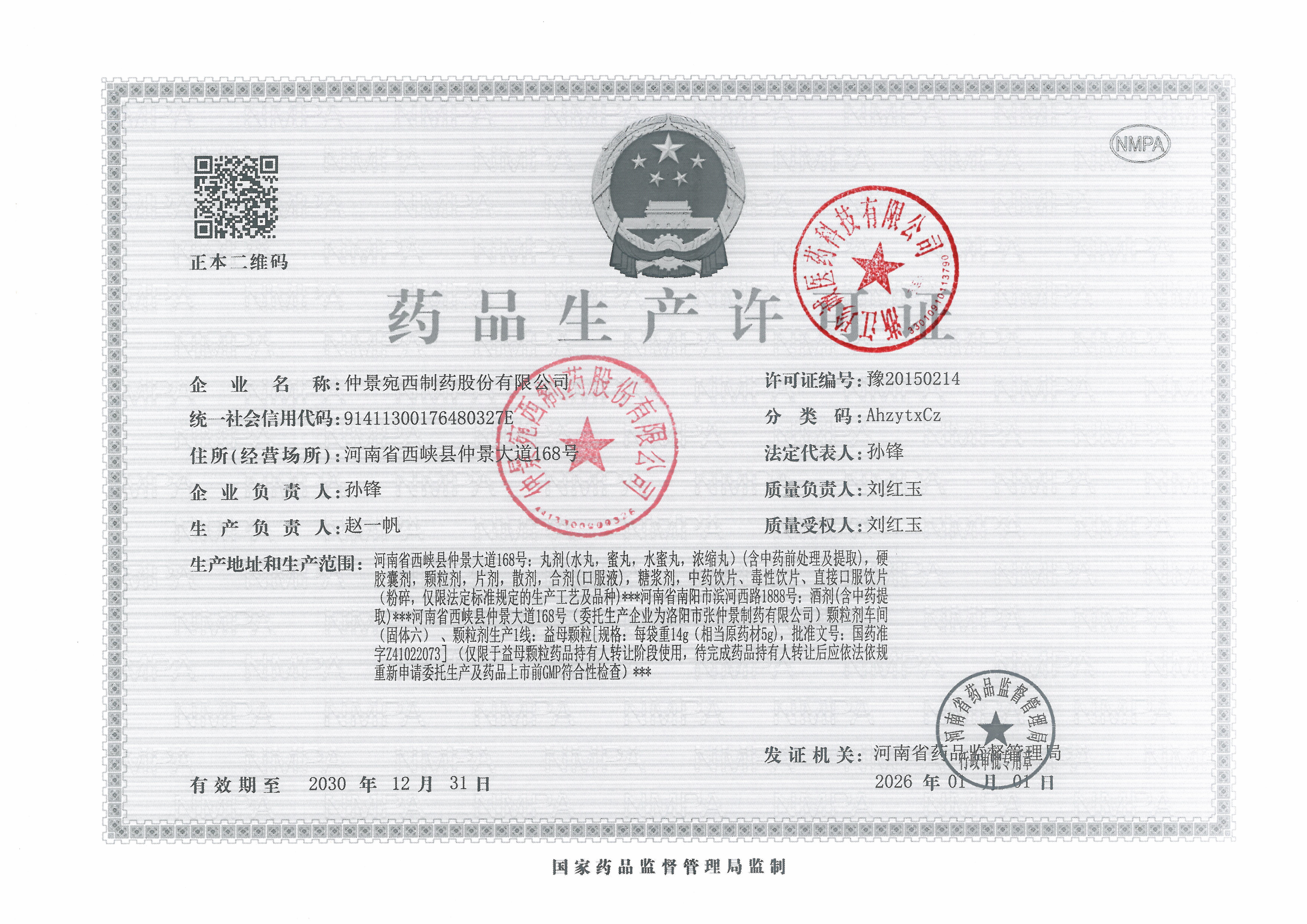 1 41000127 仲景宛西制药股份有限公司 许可证.jpg Jan 9, 2026 10:48:52 AM 查看下载