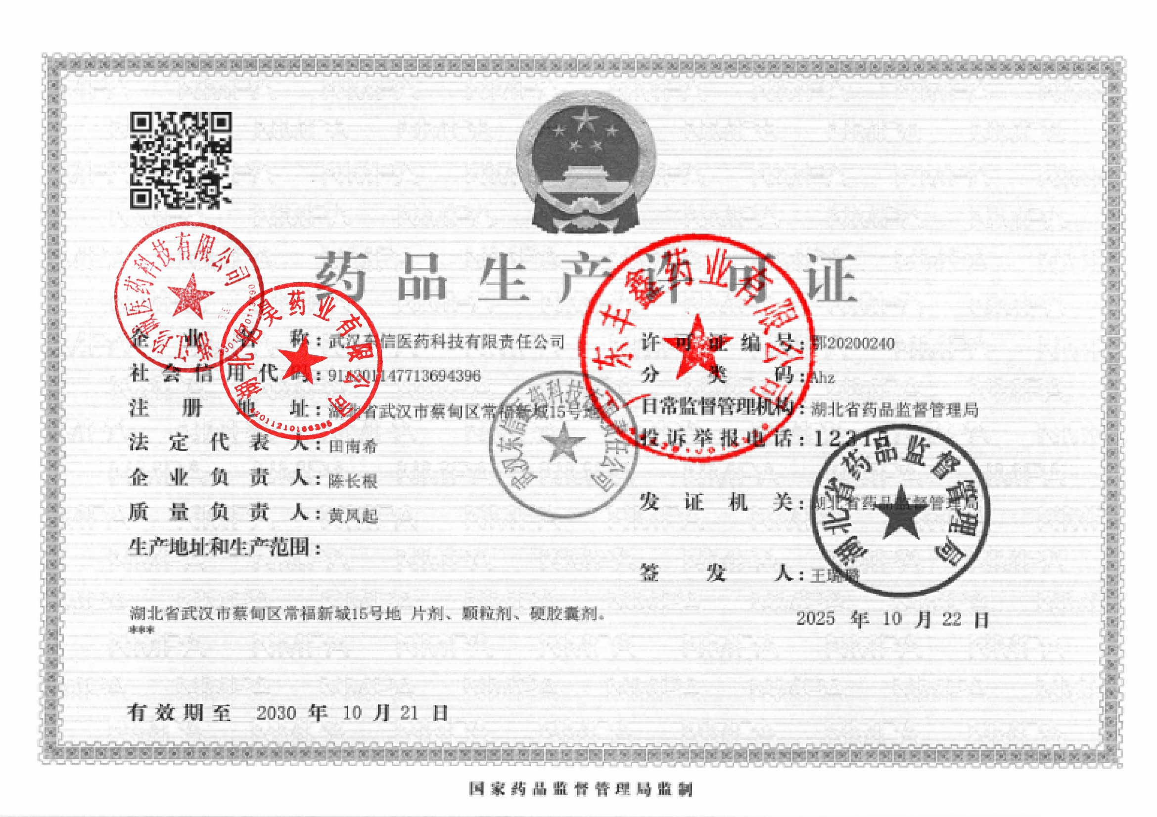 1 42000460 武汉东信医药科技有限责任公司 药品生产许可证.jpg Jan 19, 2026 2:40:07 PM 查看下载