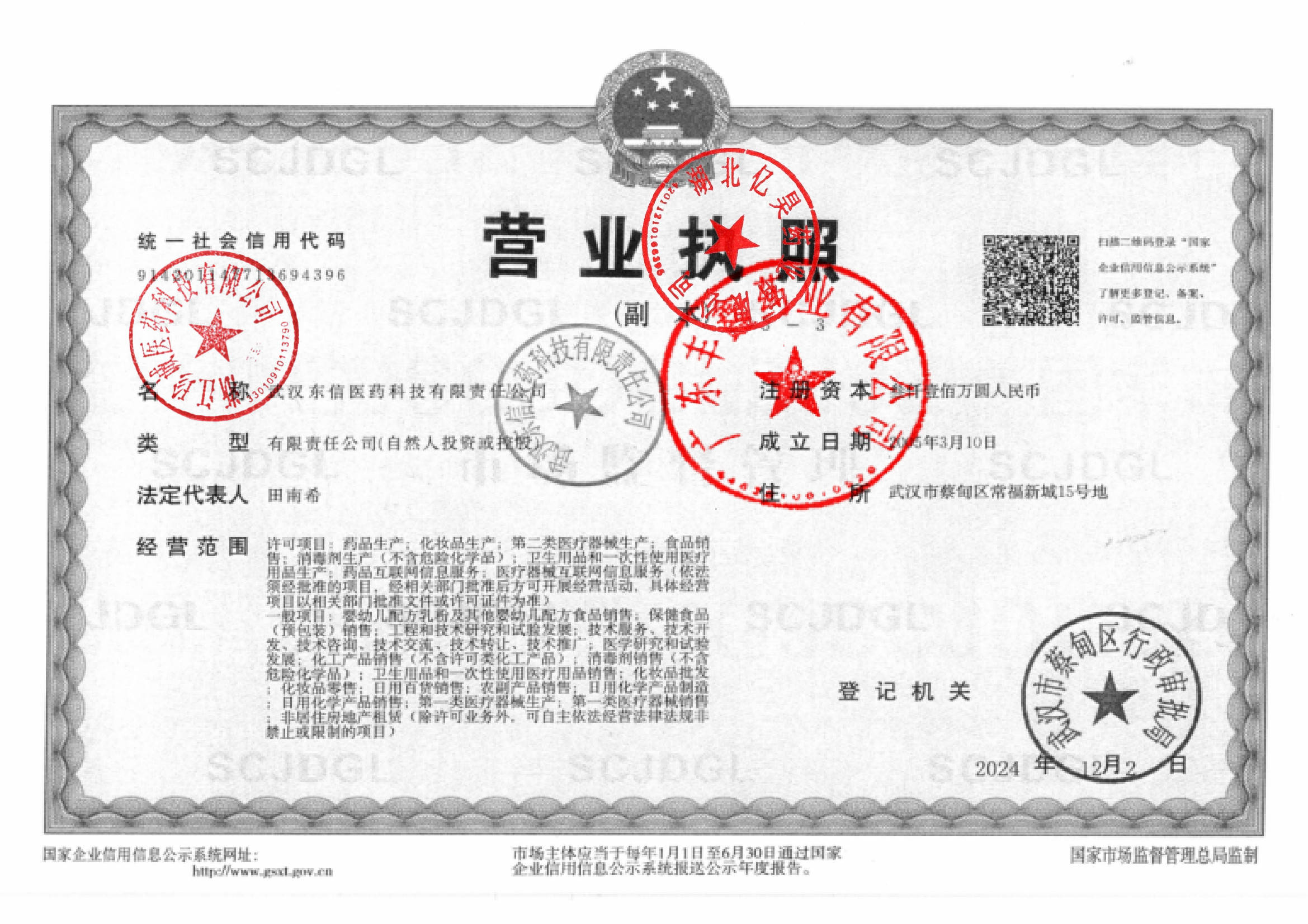 2 42000460 武汉东信医药科技有限责任公司 营业执照.jpg Jan 19, 2026 2:40:07 PM 查看下载