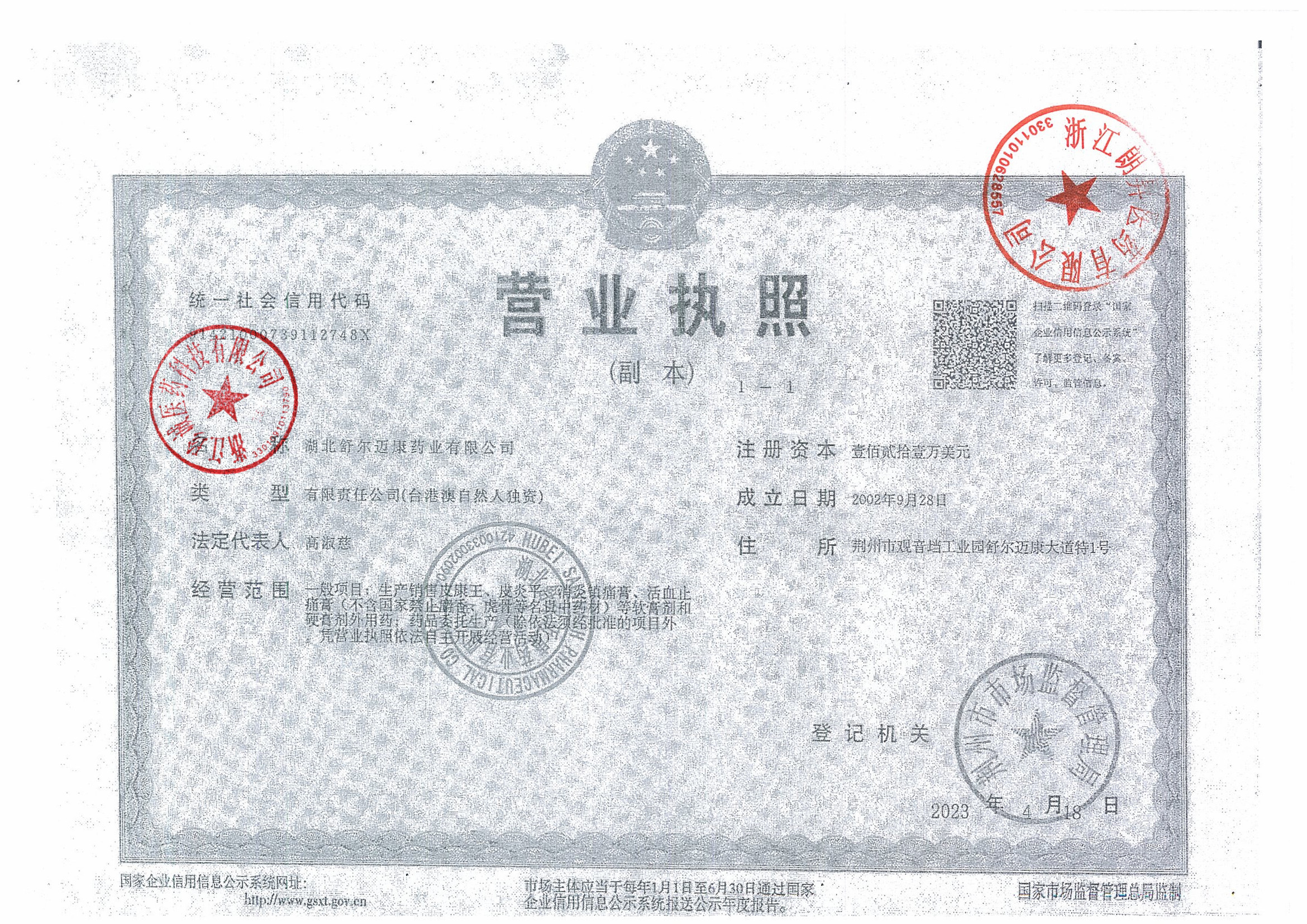 1 42000461 湖北舒尔迈康药业有限公司 营业执照.jpg Jan 30, 2026 10:09:21 AM 查看下载