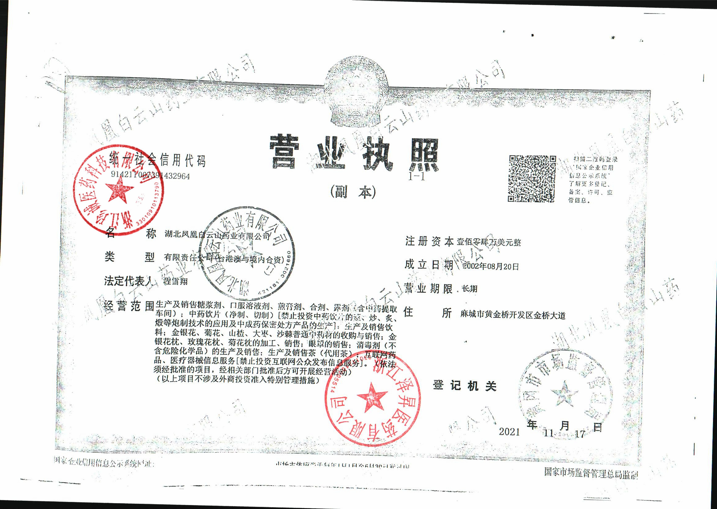 | 3 | 42000484 | 湖北凤凰白云山药业有限公司 | 营业执照.jpg | Dec 17, 2025 1:56:55 PM | 查看下载 | |