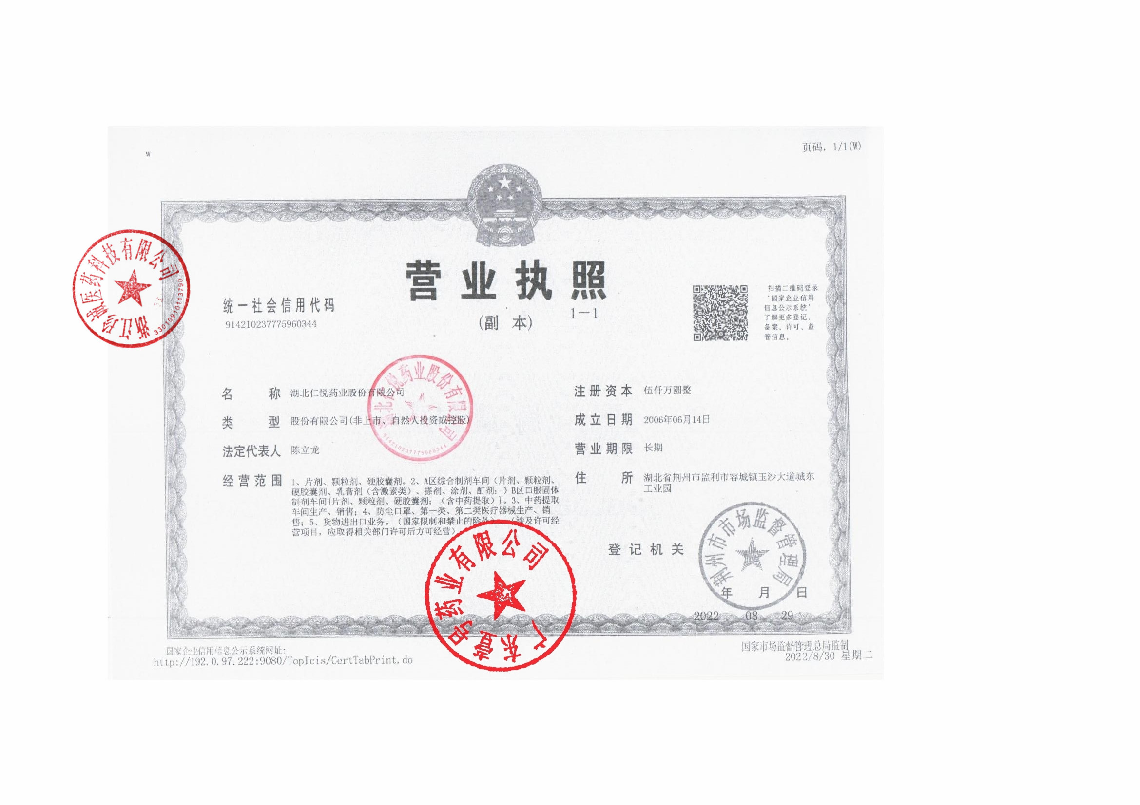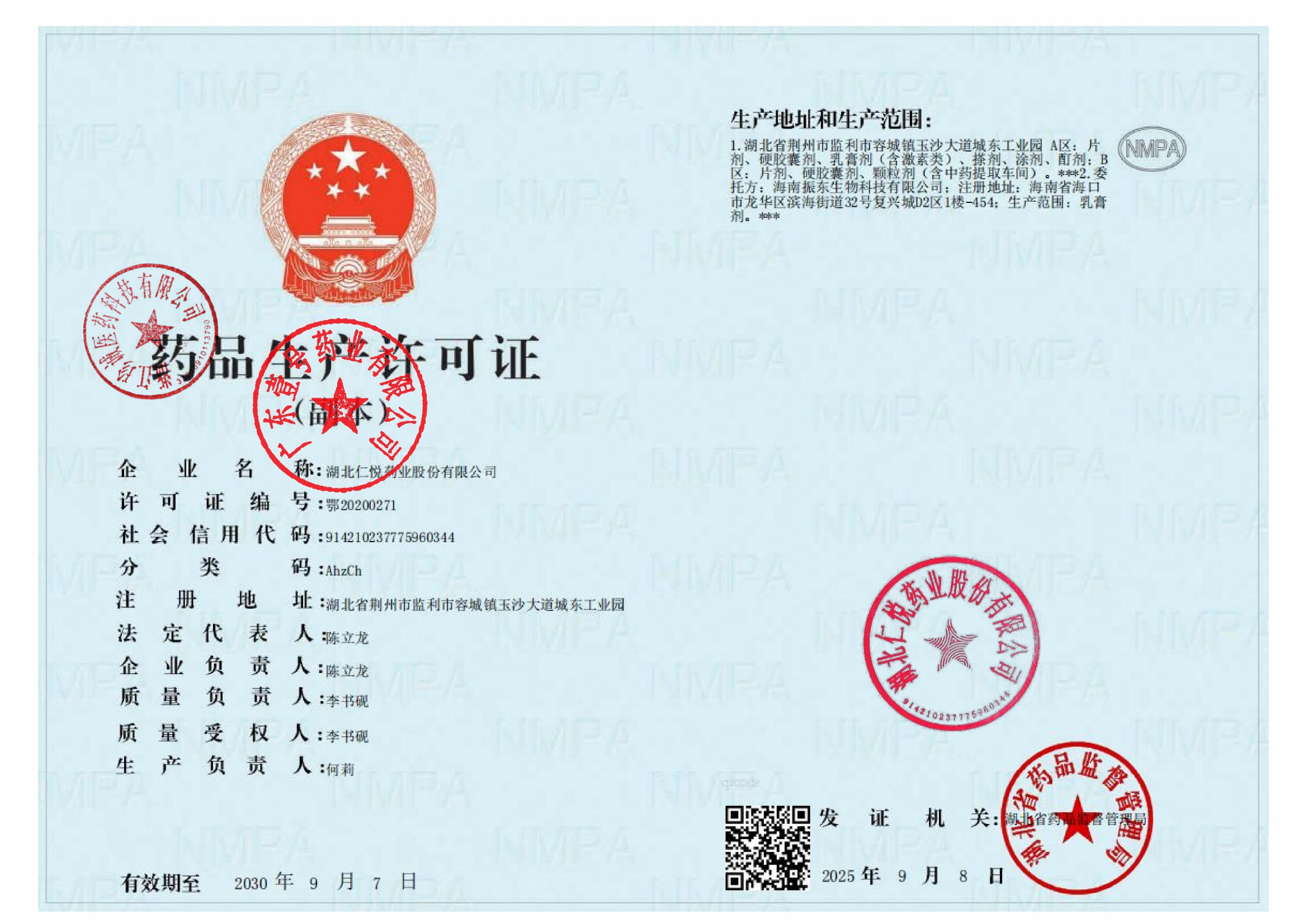 1 42000487 湖北仁悦药业股份有限公司 许可证 (2).jpg Dec 18, 2025 1:43:51 PM 查看下载