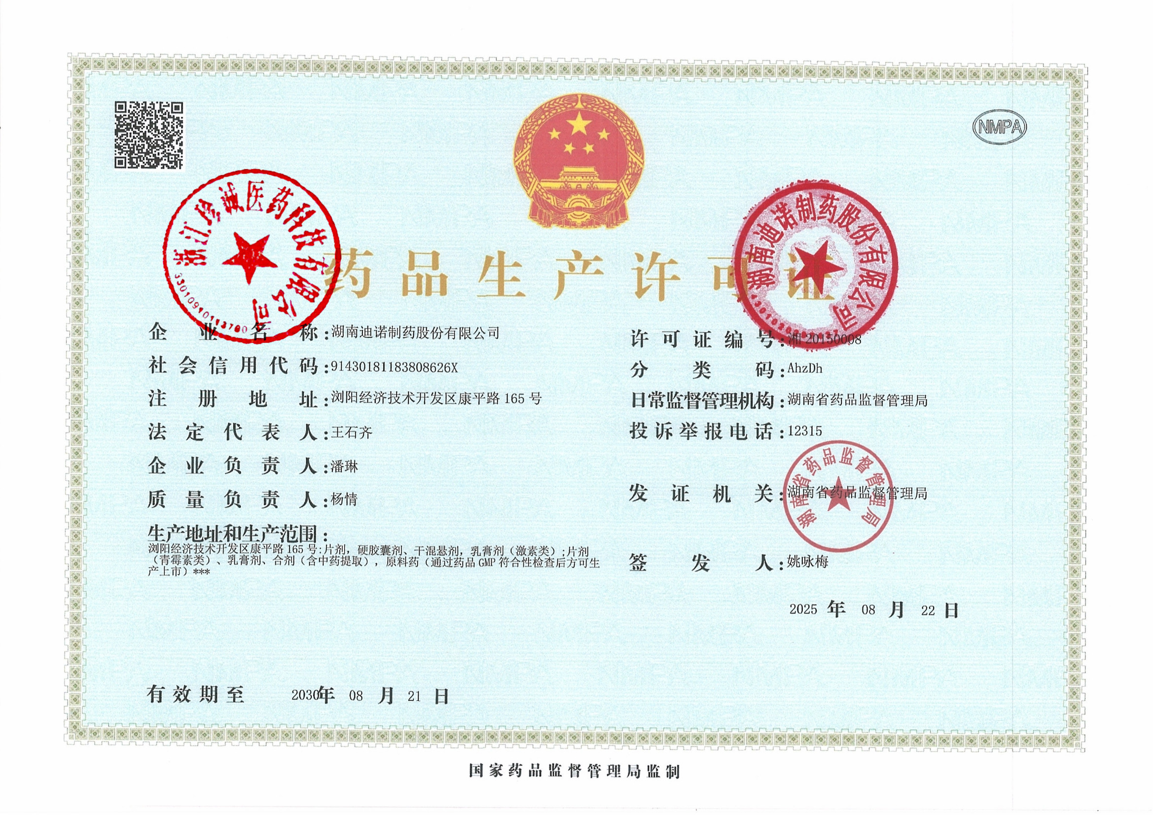 5 43000011 湖南迪诺制药股份有限公司 药品生产许可证 (2).jpg Mar 12, 2025 4:02:35 PM 查看下载