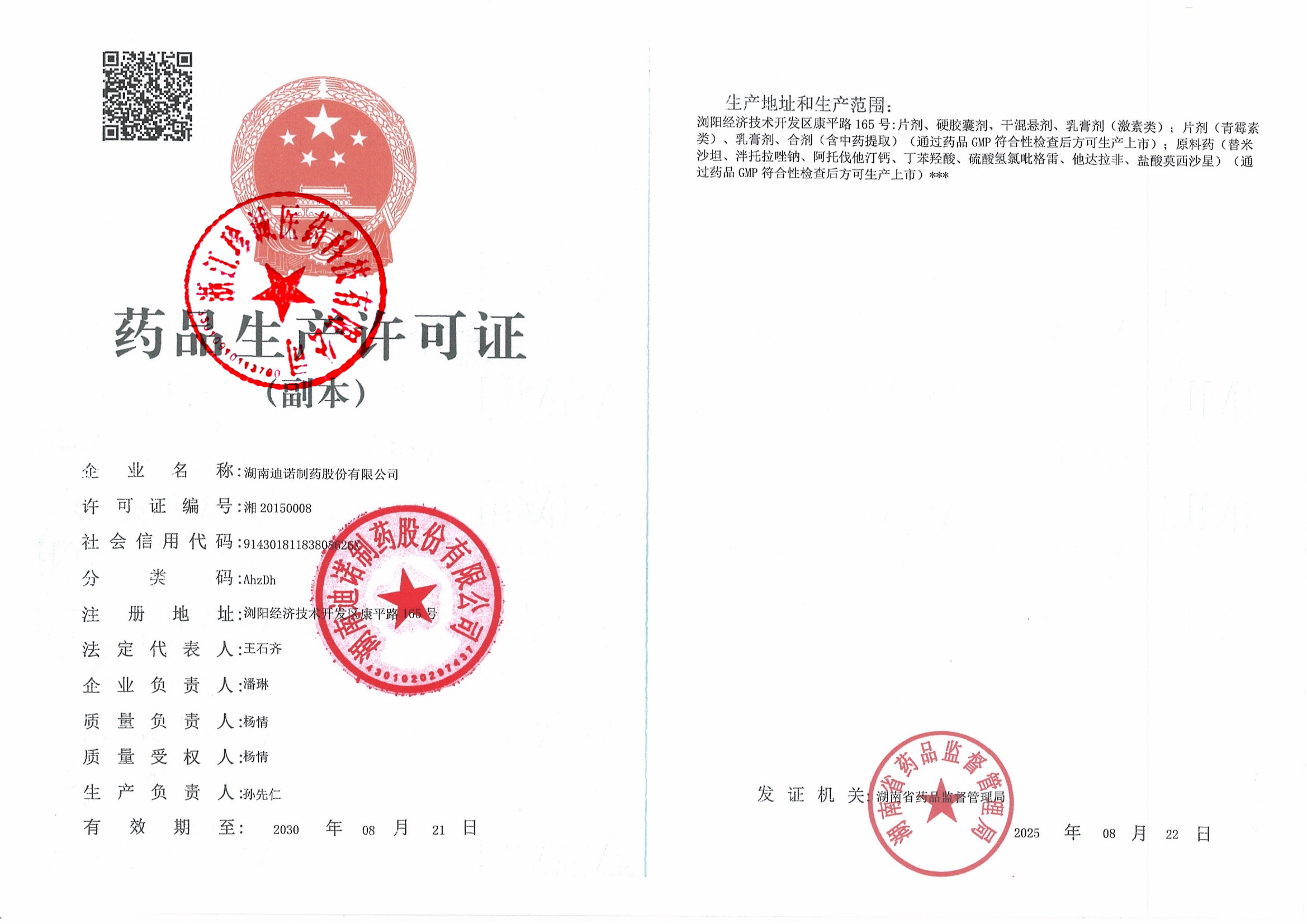 2 43000011 湖南迪诺制药股份有限公司 生产许可证0001.jpg Sep 5, 2025 10:05:28 AM 查看下载