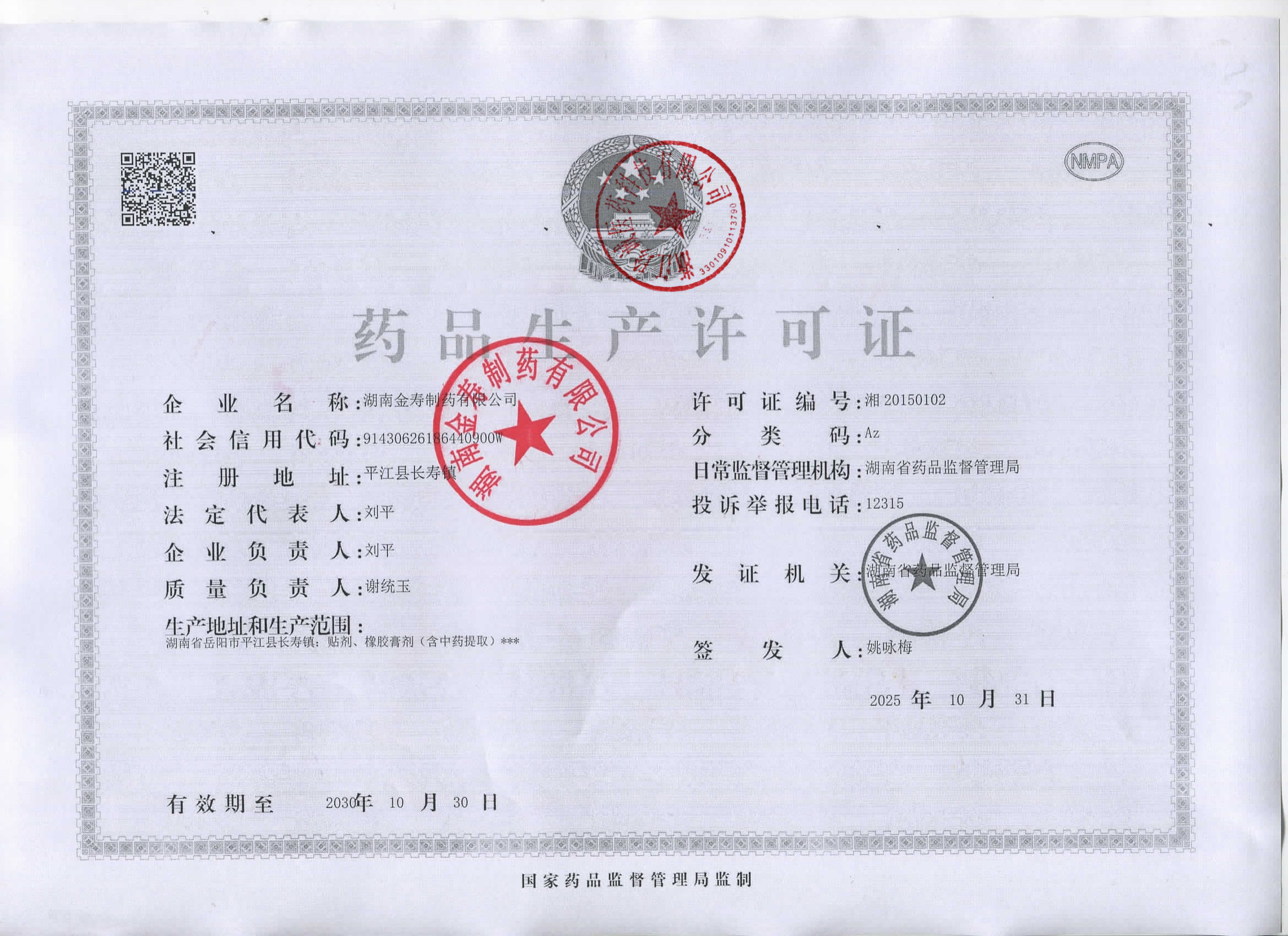 | 3 | 43000112 | 湖南金寿制药有限公司 | 许可证0000.jpg | Nov 7, 2025 10:03:25 AM | 查看下载 | |