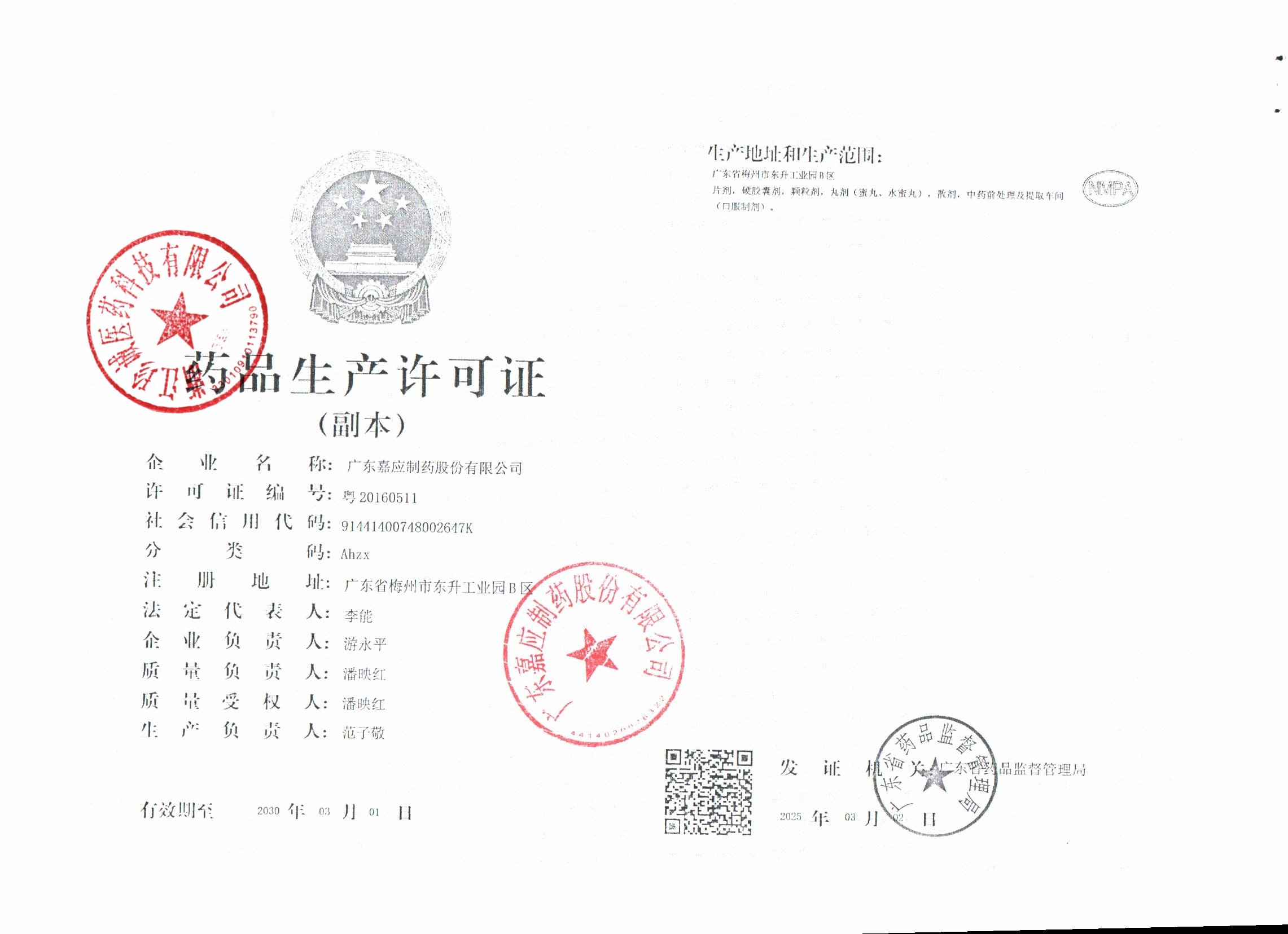 | 2 | 44000069 | 广东嘉应制药股份有限公司 | 药品生产许可证 (2).png | Nov 4, 2025 8:57:00 AM | 查看下载 | |