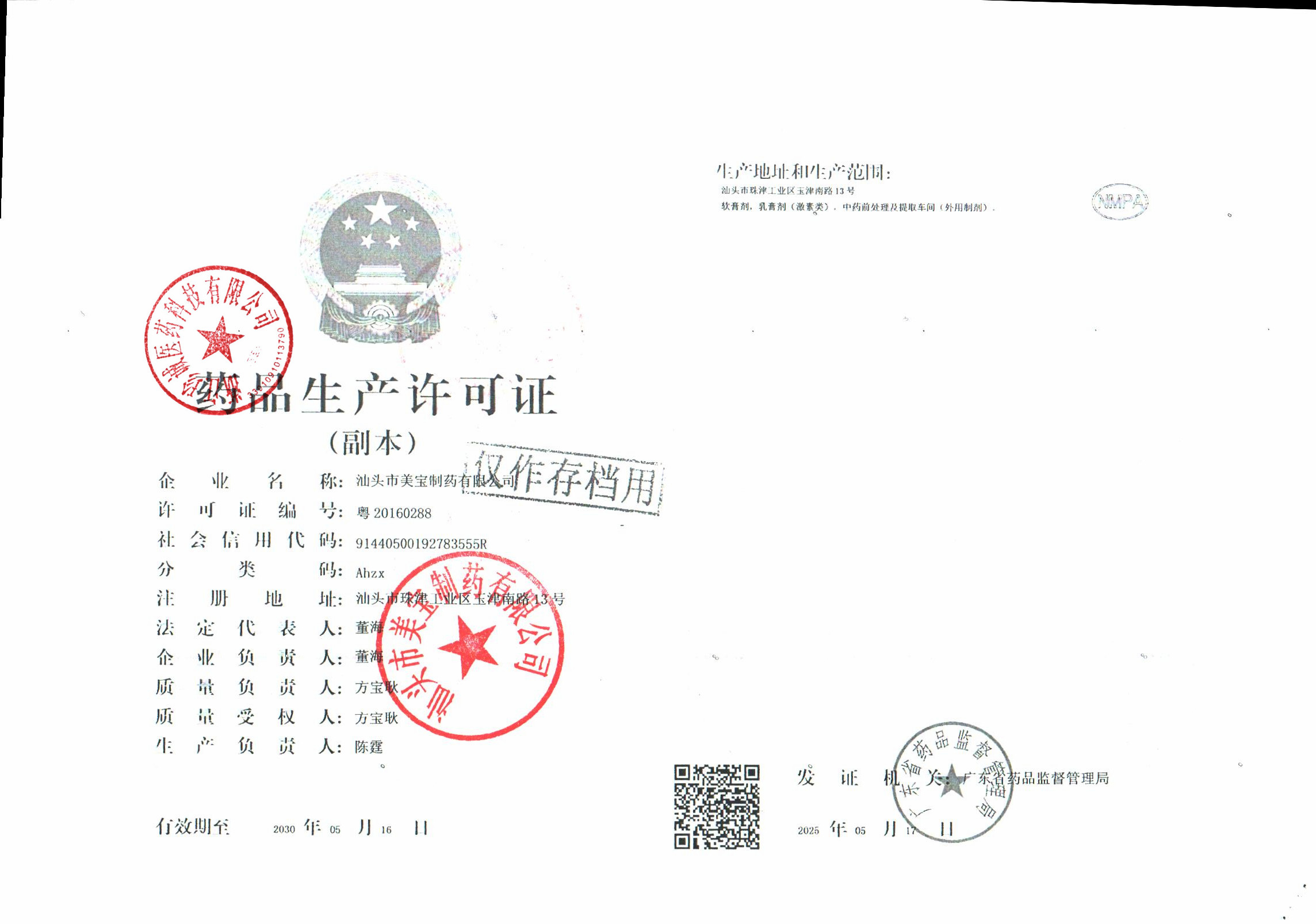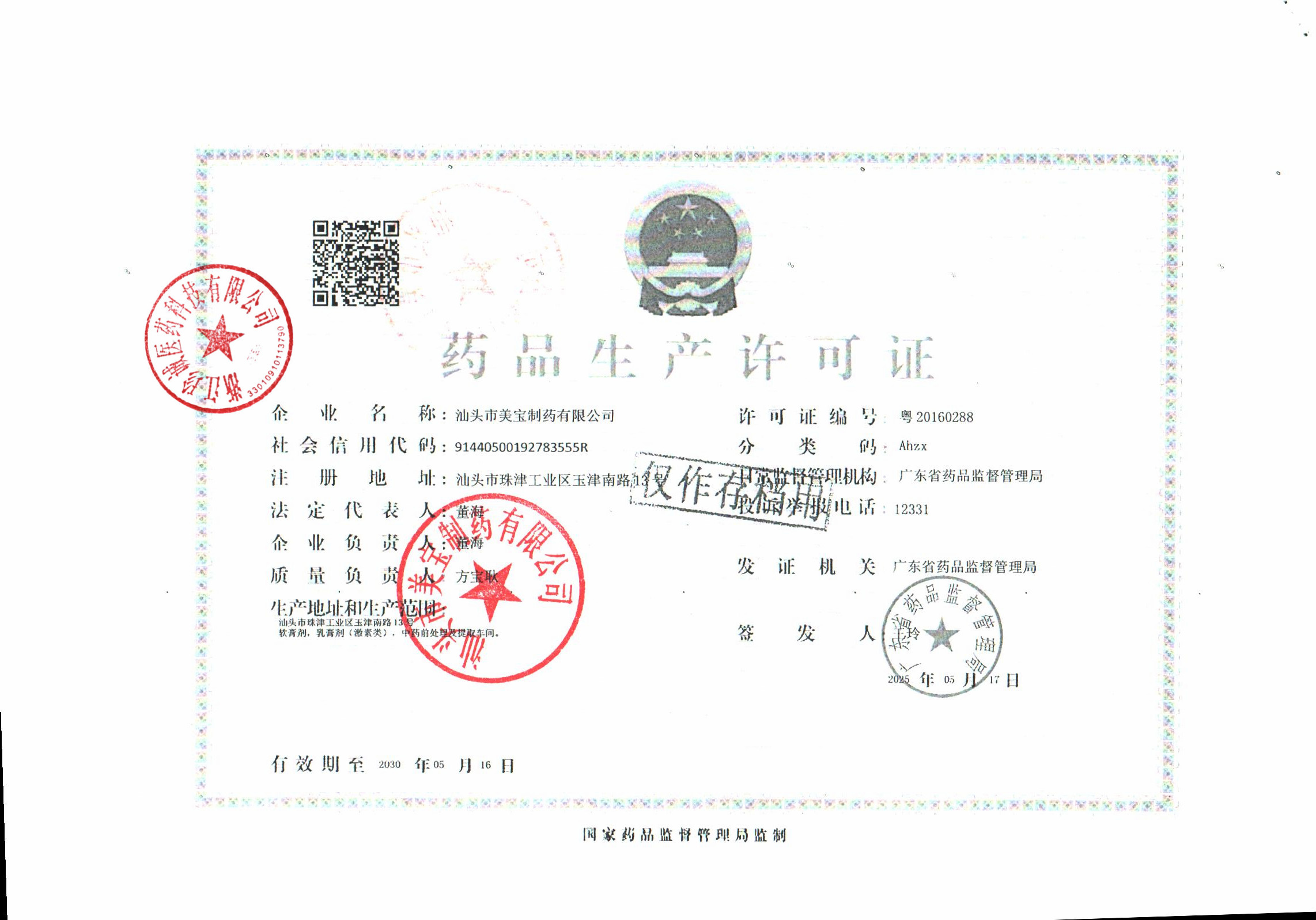 | 4 | 44000486 | 汕头市美宝制药有限公司 | 药品生产许可证 (1).jpg | Oct 24, 2025 2:13:05 PM | 查看下载 |