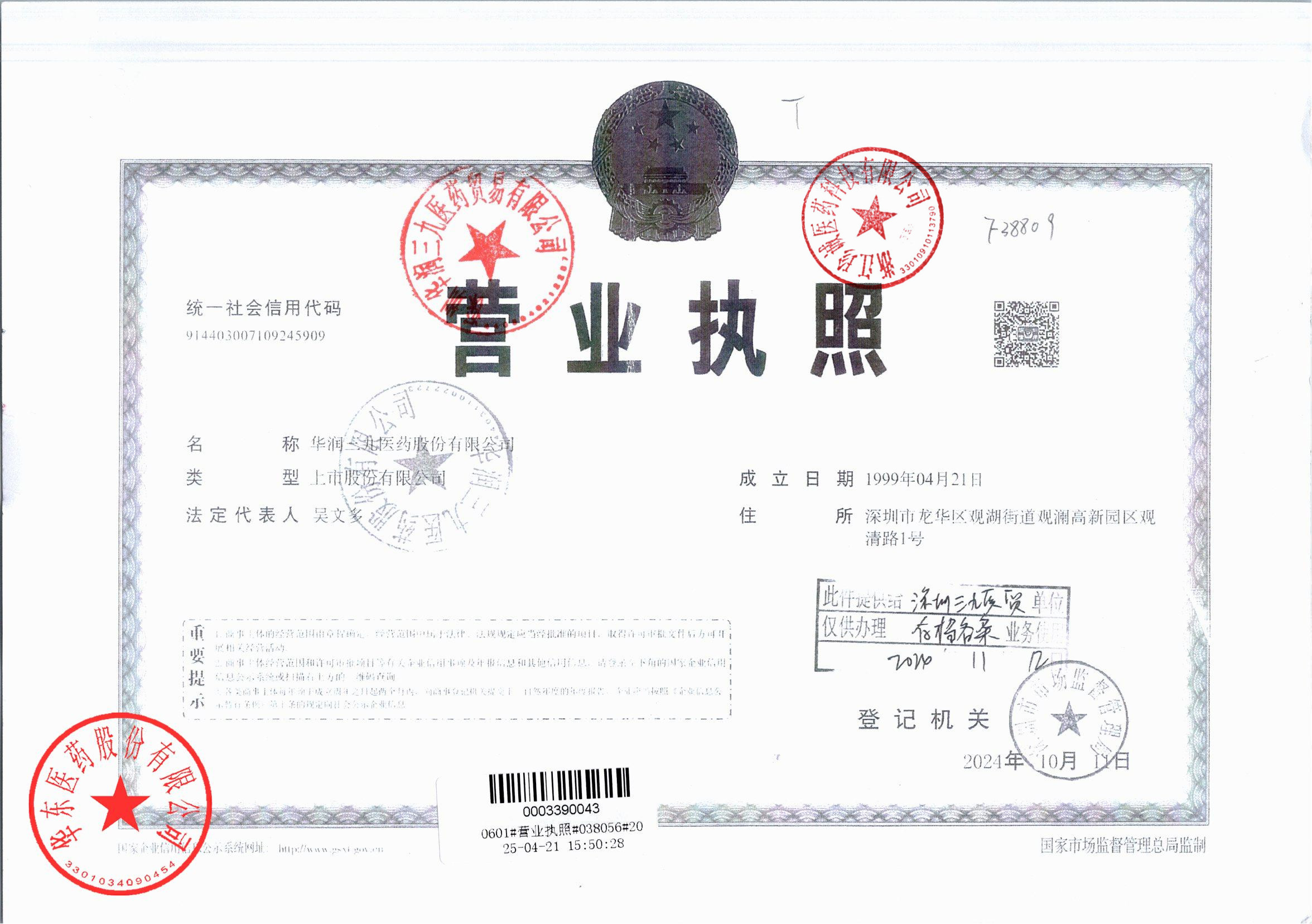 1 44000518 华润三九医药股份有限公司 营业执照.jpg Mar 19, 2026 3:25:15 PM 查看下载
