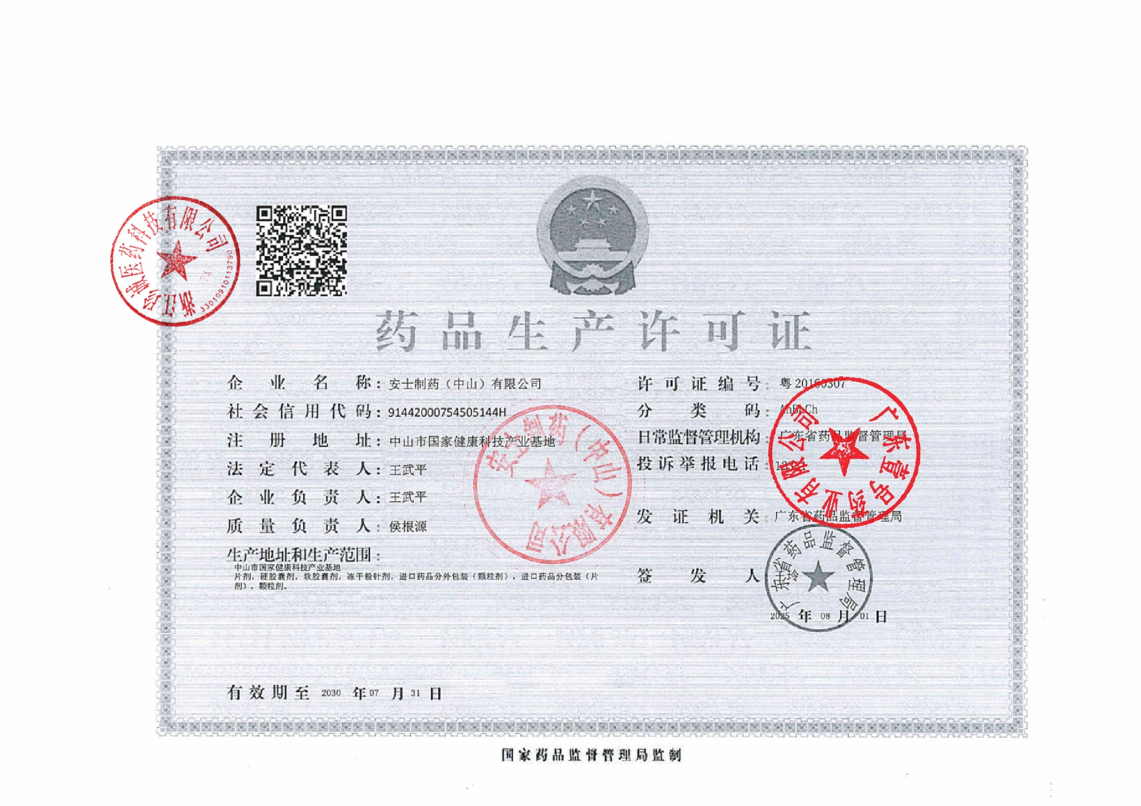 | 3 | 44000522 | 安士制药(中山)有限公司 | 药品生产许可证0001.jpg | Nov 13, 2025 2:12:01 PM | 查看下载 | |