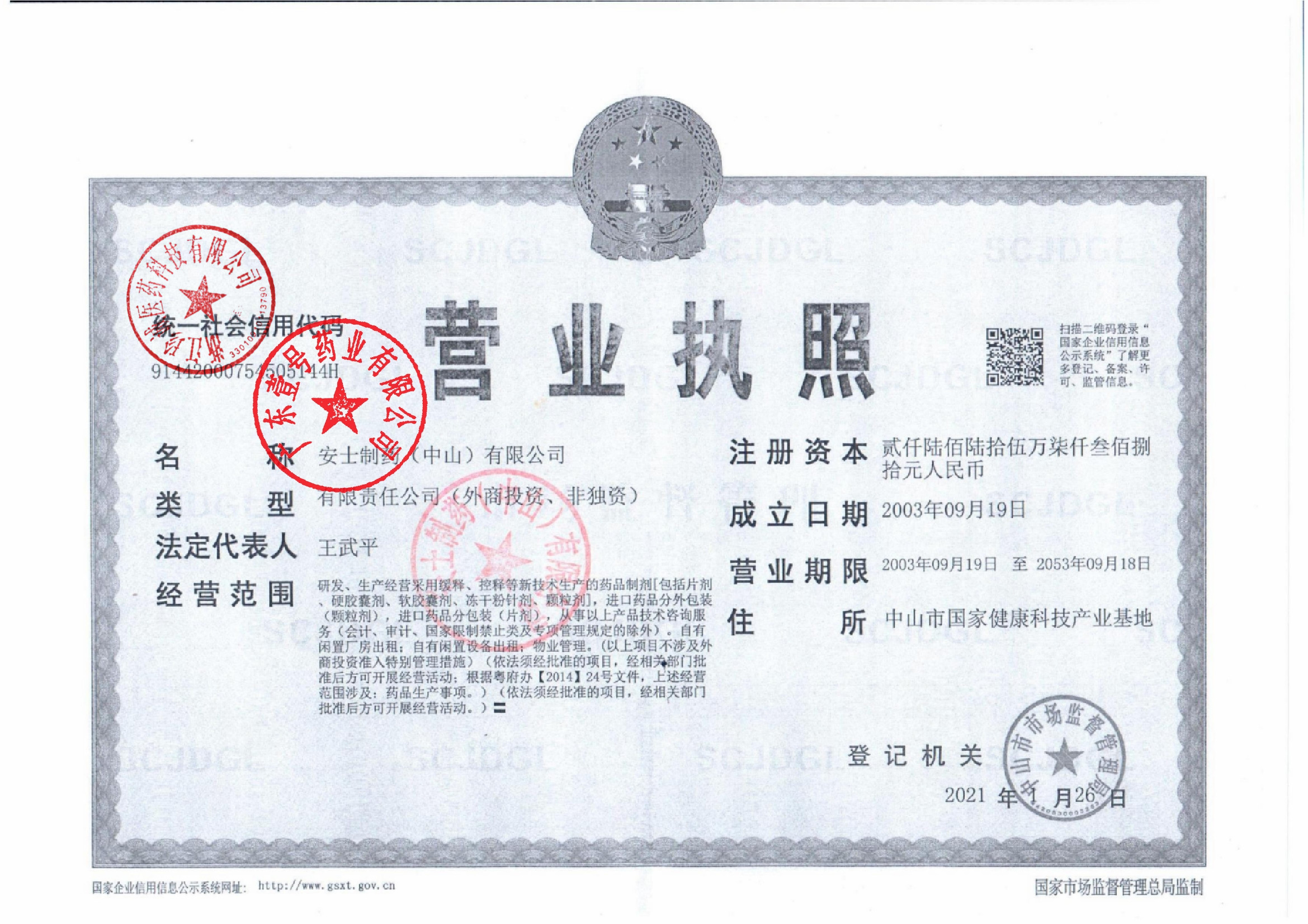 | 2 | 44000522 | 安士制药(中山)有限公司 | 营业执照0000.jpg | Nov 13, 2025 2:12:01 PM | 查看下载 | |