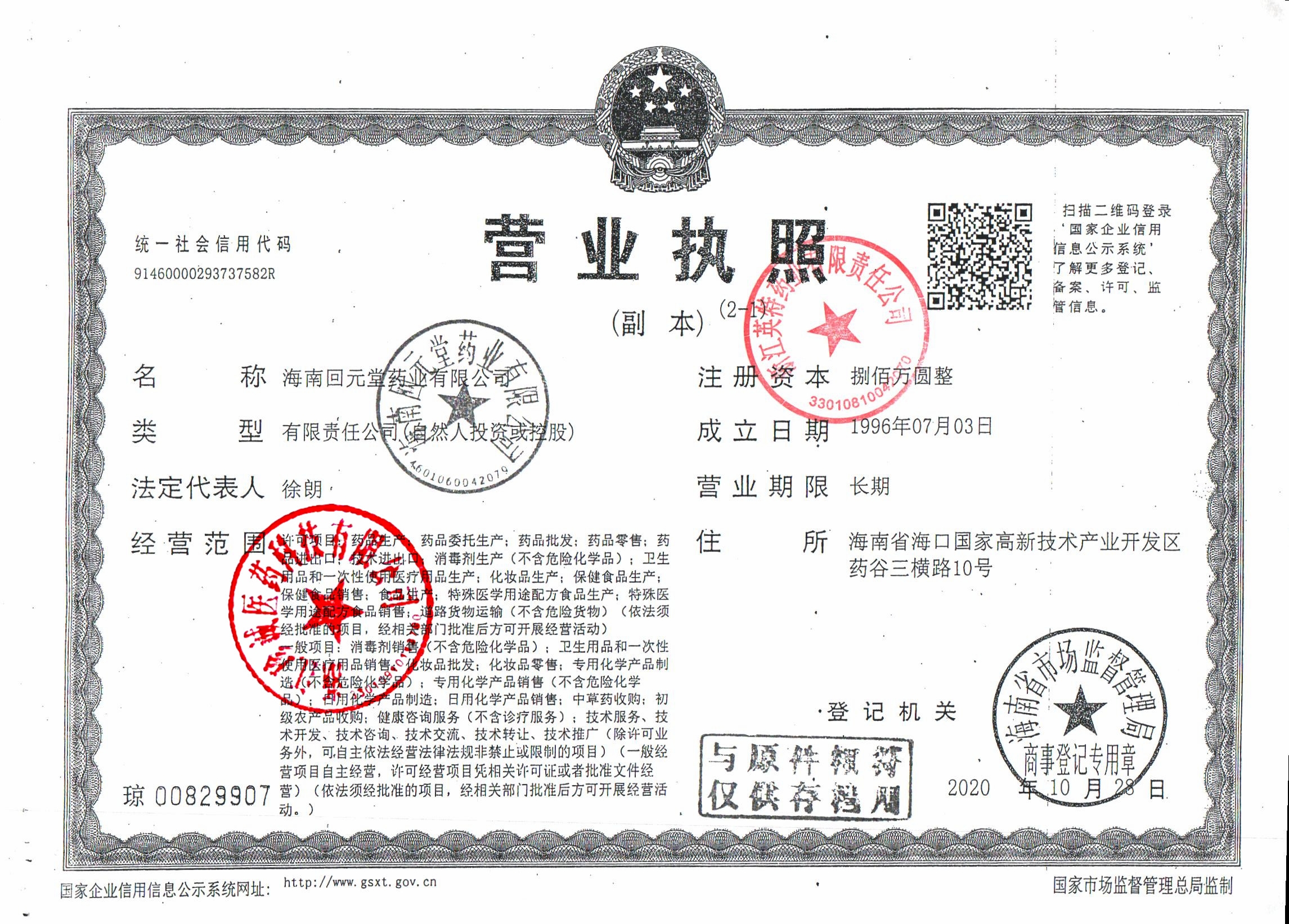 3 46000047 海南回元堂药业有限公司 营业执照.jpg Sep 24, 2025 3:51:16 PM 查看下载