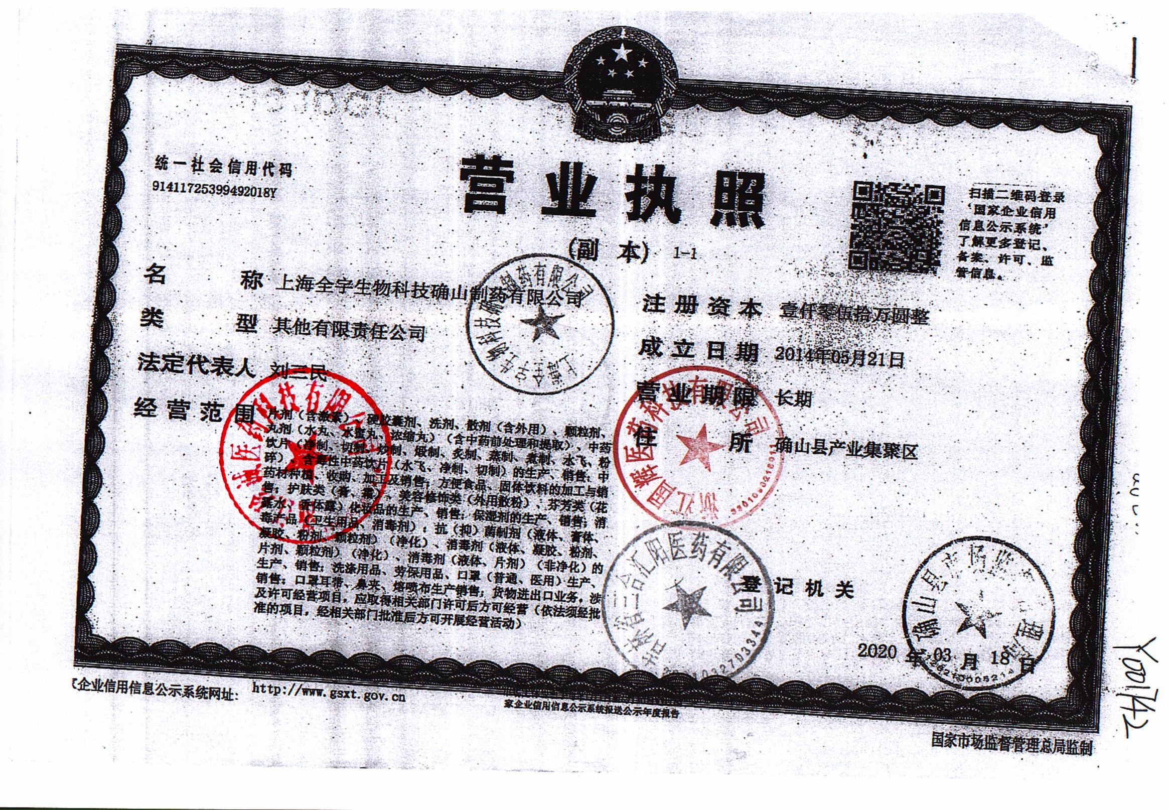 | 2 | Z99000061 | 上海全宇生物科技确山制药有限公司 | 药品生产许可证.jpg | Jan 28, 2026 3:04:04 PM | 查看下载 | |