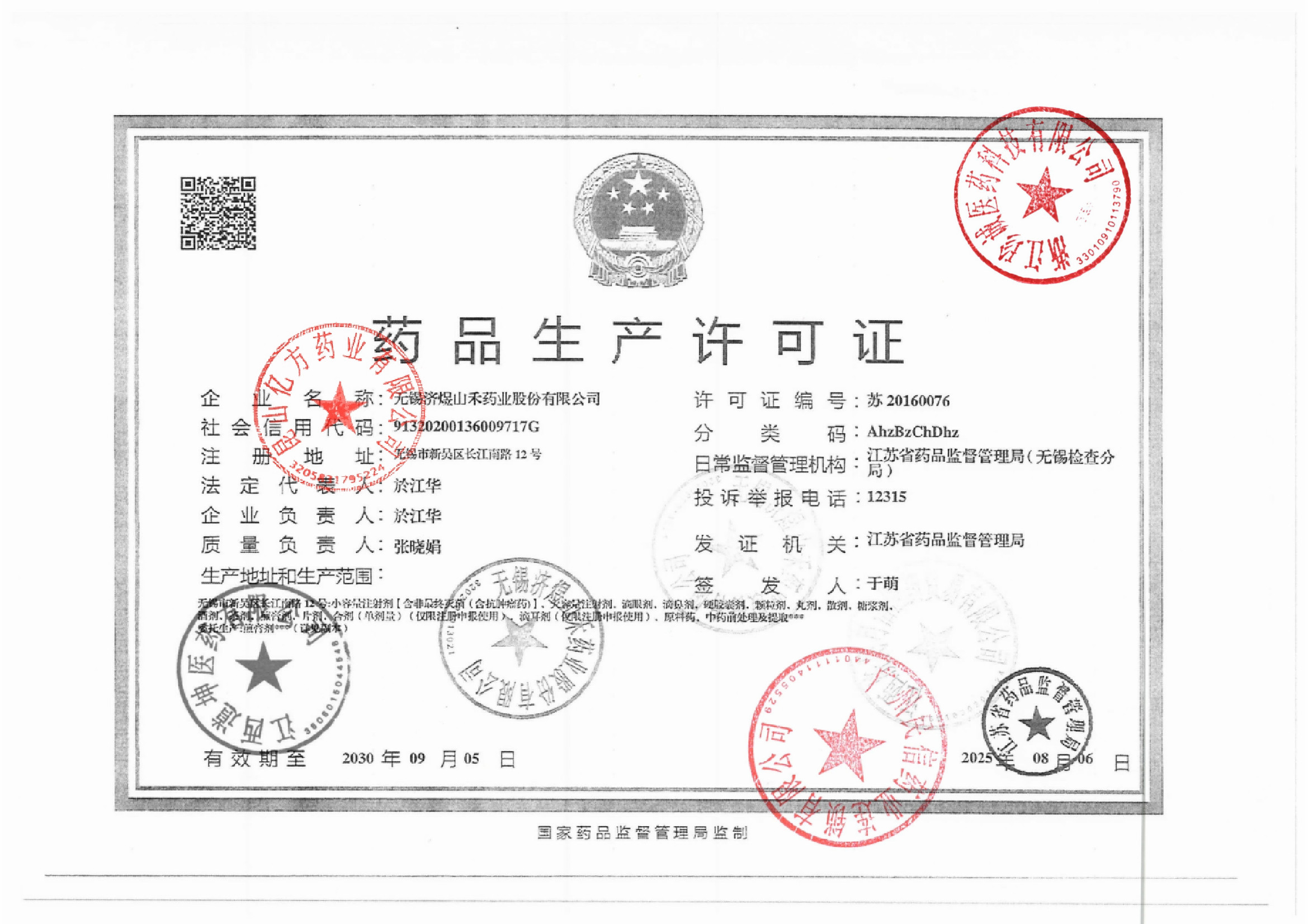 2 Z99000140 无锡济煜山禾药业股份有限公司 许可证 (2).jpg Jan 15, 2026 1:16:57 PM 查看下载