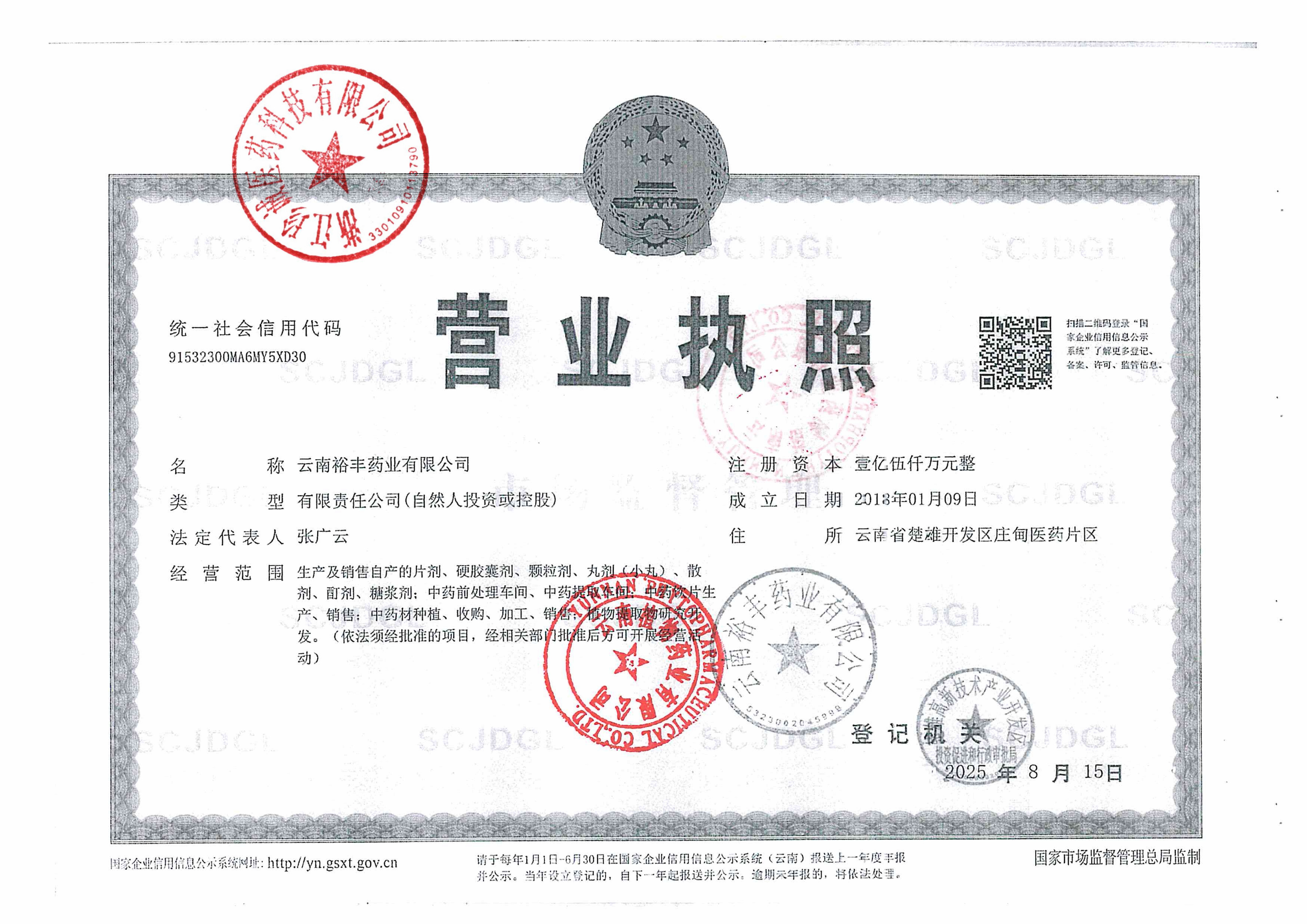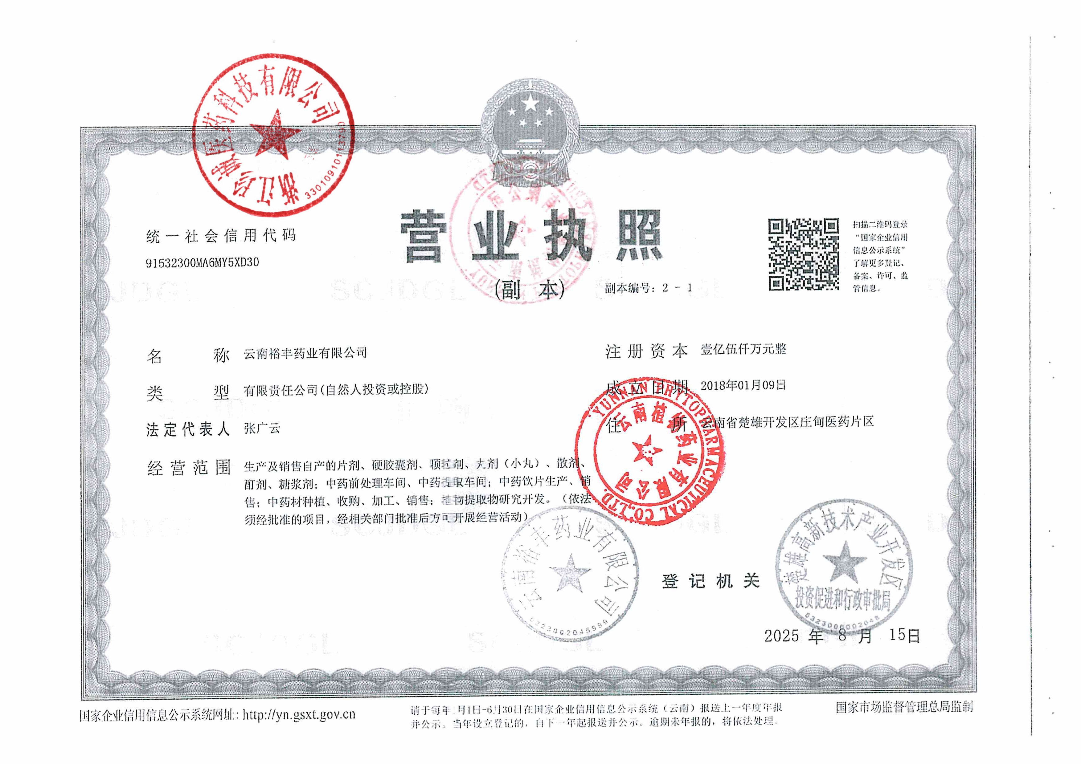1 Z99000287 云南裕丰药业有限公司 营业执照 (2).jpg Dec 19, 2025 2:35:16 PM 查看下载