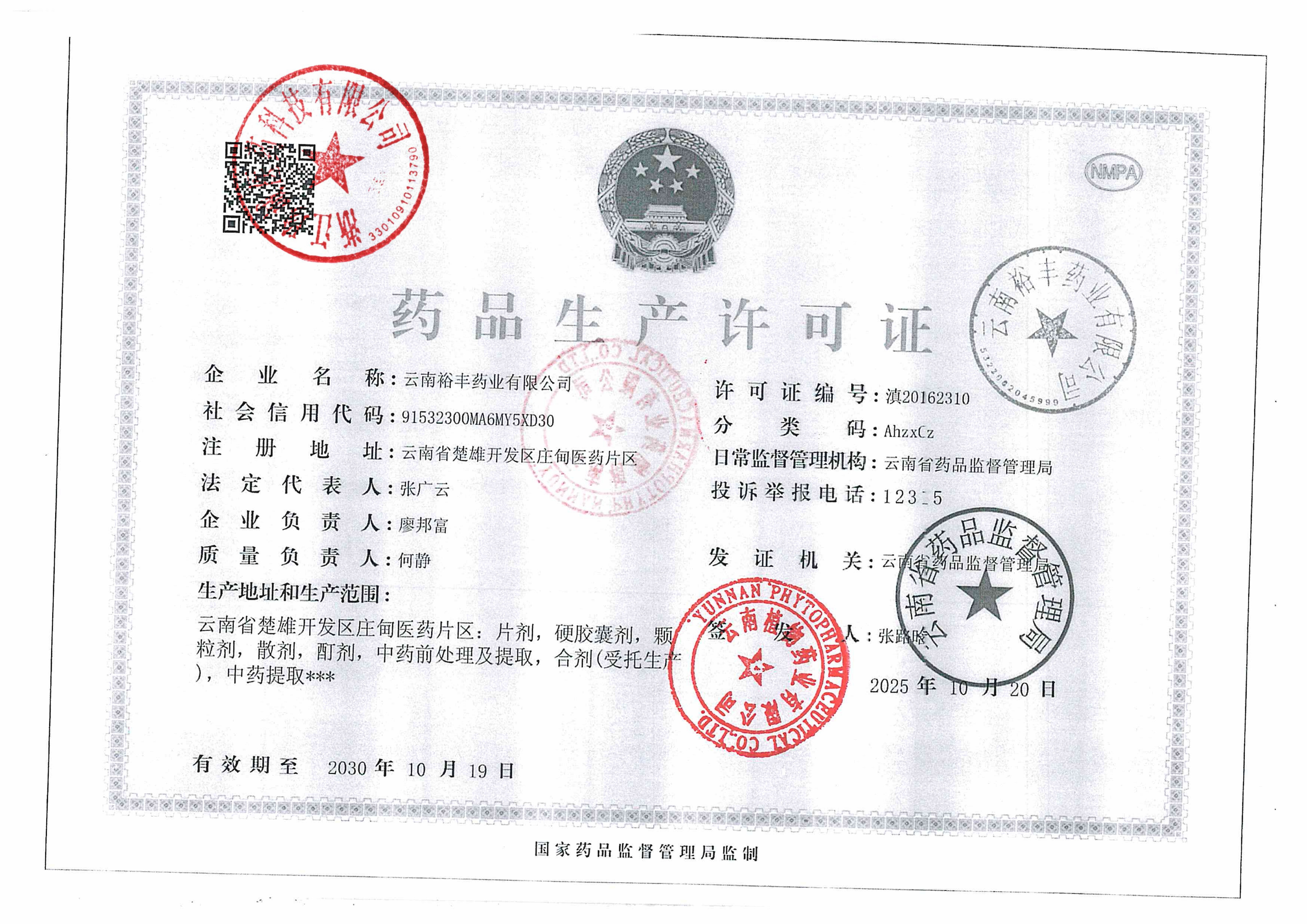 5 Z99000287 云南裕丰药业有限公司 许可证 (1).jpg Dec 19, 2025 2:35:16 PM 查看下载