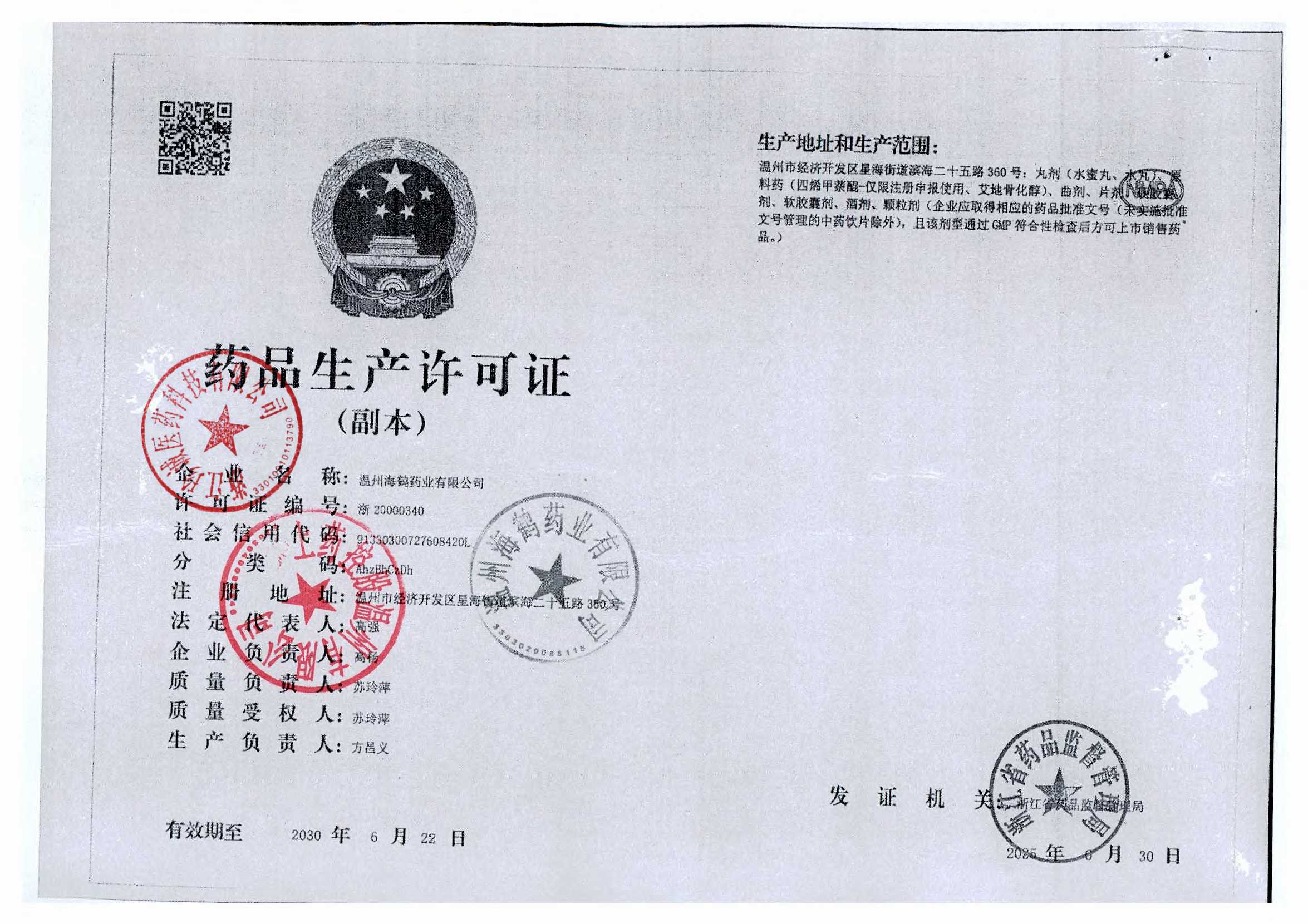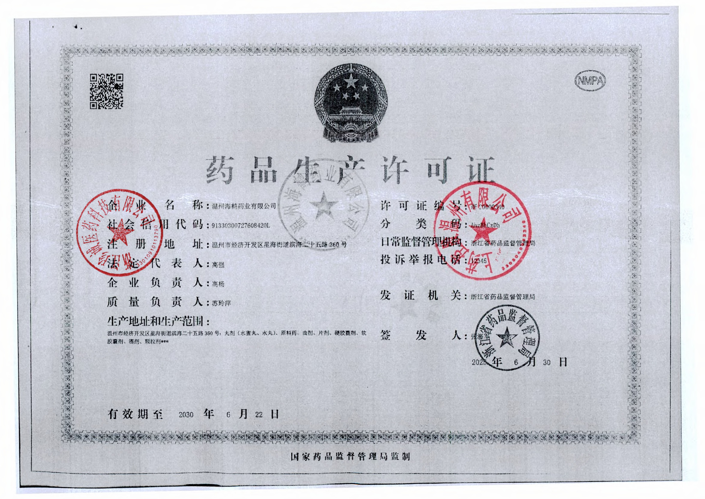 | 7 | Z99000589 | 温州海鹤药业有限公司 | 许可证 (1).jpg | Jan 26, 2026 3:54:58 PM | 查看下载 | |
