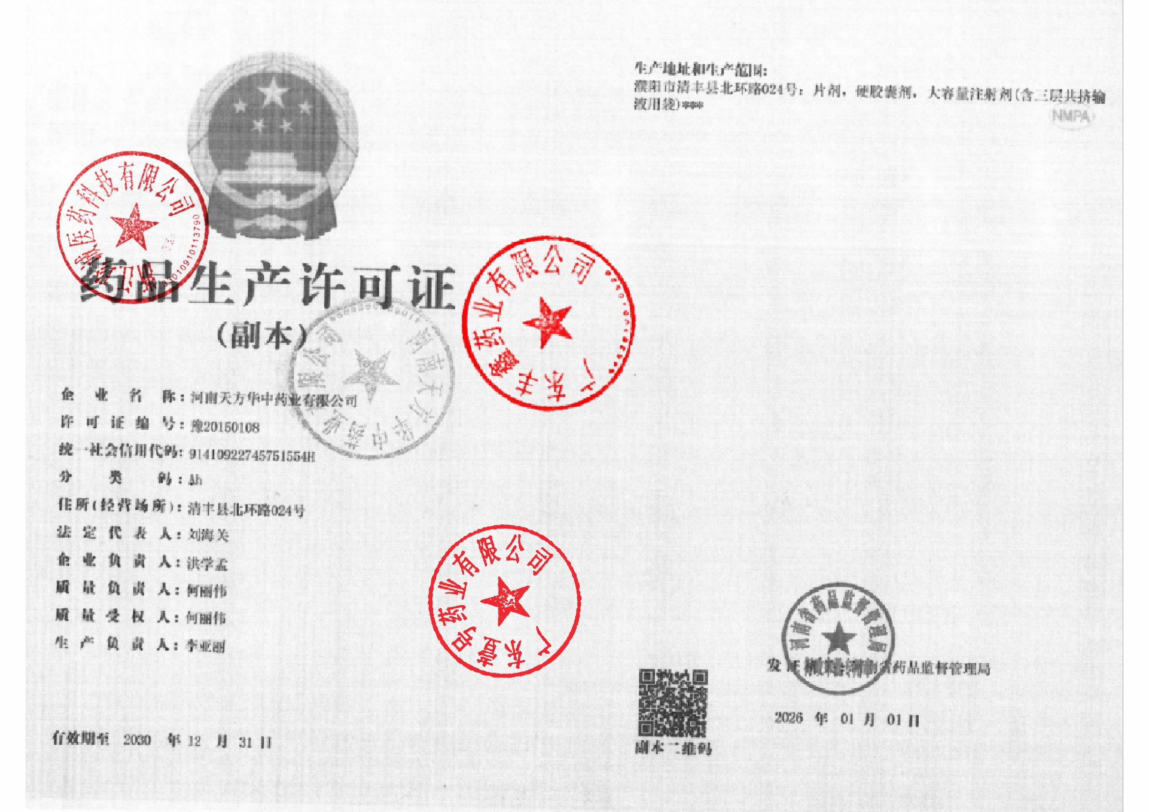 1 Z99000708 河南天方药业中药有限公司 药品生产许可.jpg Feb 9, 2026 4:14:00 PM 查看下载