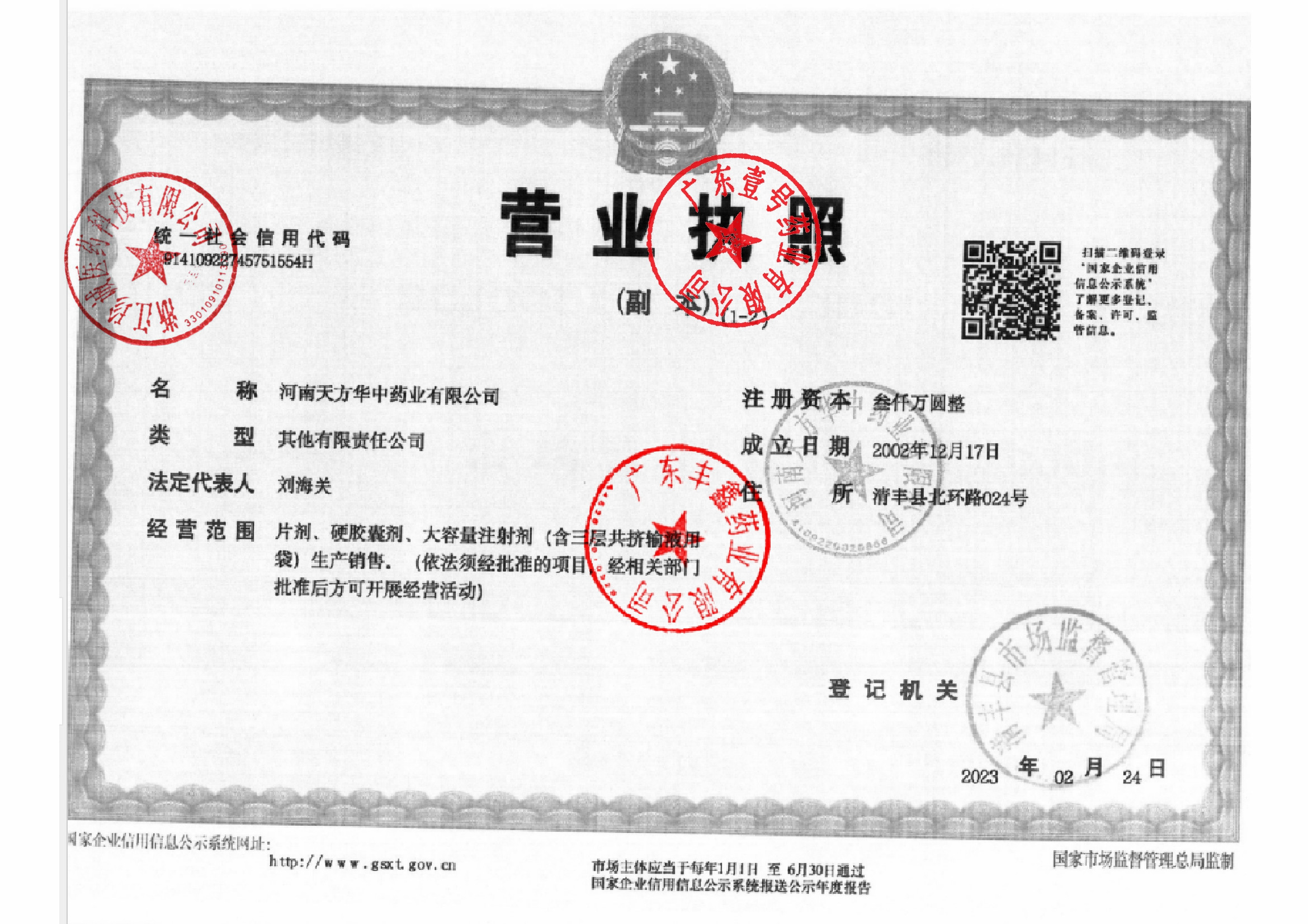 2 Z99000708 河南天方药业中药有限公司 营业执照.jpg Feb 9, 2026 4:14:00 PM 查看下载
