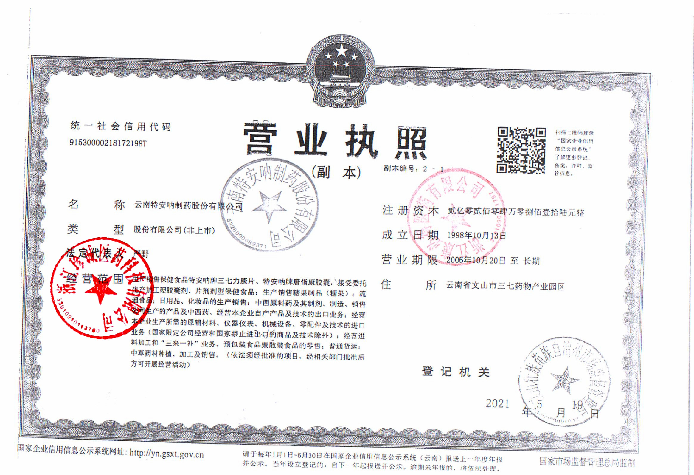 | 4 | Z99002382 | 云南特安呐制药股份有限公司 | 营业执照.jpg | Oct 10, 2025 3:09:55 PM | 查看下载 |