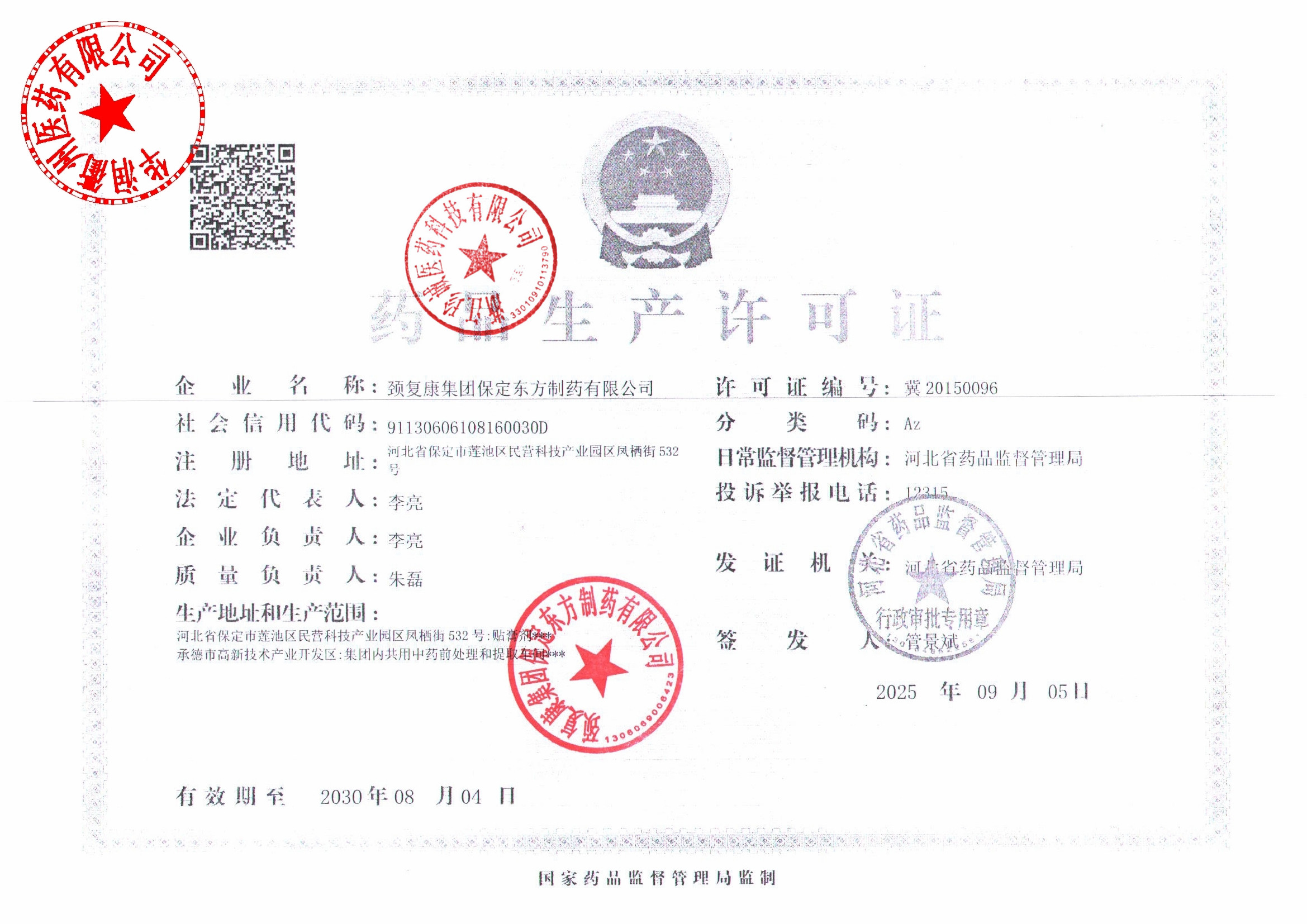 2 Z99002426 颈复康集团保定东方制药有限公司 药品生产许可证 (1).jpg Oct 16, 2025 11:01:21 AM 查看下载